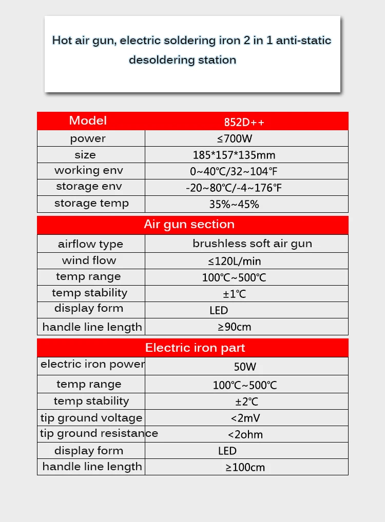 SAIKE 852D + + электрическая паяльная станция, пистолет с горячим воздухом, 2в1 сварочный набор, стандартная паяльная станция с подачей воздушного пистолетаОписание: