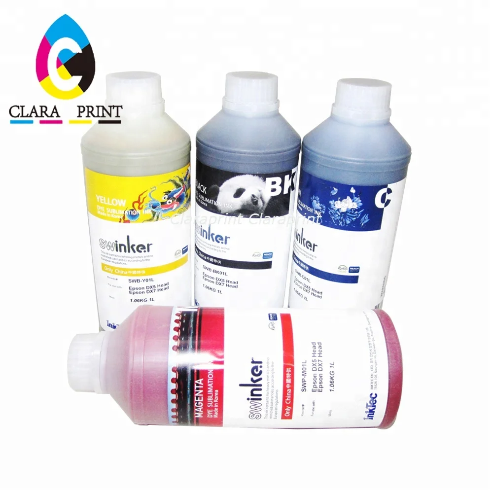 Оригинальные чернила для сублимации Inktec SWinker Доступен в CMYK с дополнительными чернилами: -Светильник голубой -Светильник пурпурный Доступно в бутылках 1000 мл В наличии: Сублимационный принтер с печатающей головкой Eps DX5 DX7