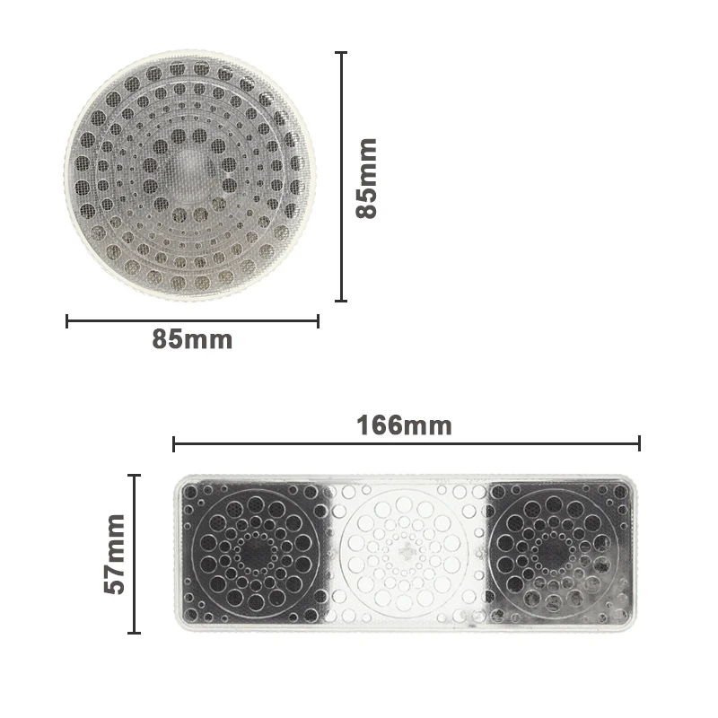Размер: Прямоугольник -- 166 мм * 57 мм * 16 мм круглый -- 85 мм * 85 мм * 20 мм