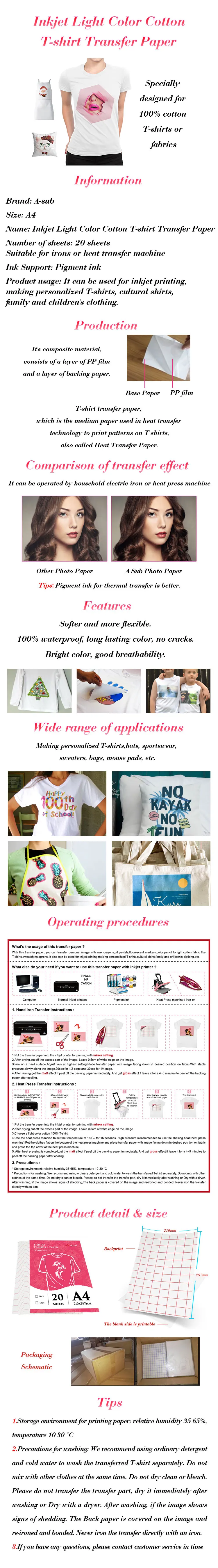 Футболка-светильник, переводная бумага для струйной печати, фотобумага, цветной светильник, 100% хлопковая ткань с подарком