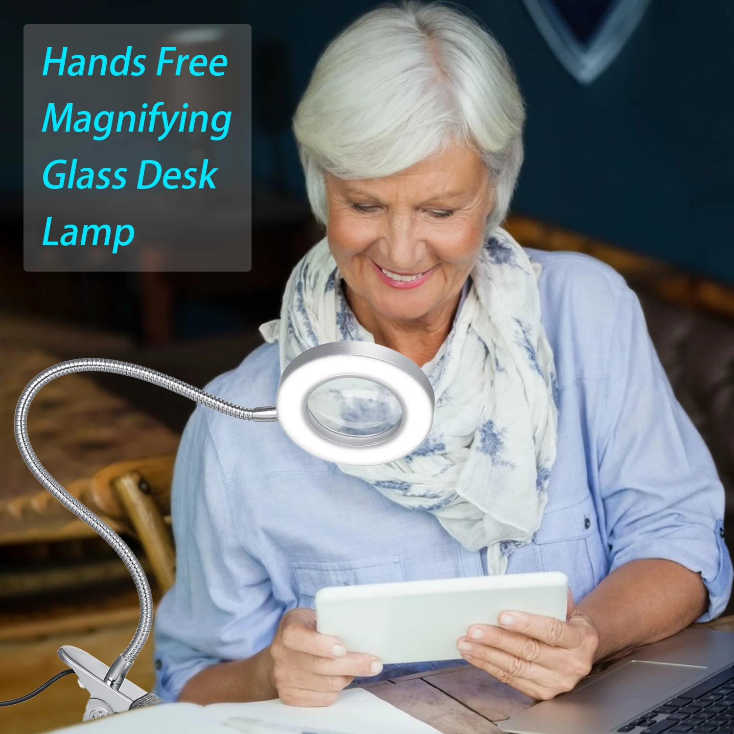 Этот пристегивающийся Настольный светильник с увеличительным стеклом привносит новую ясность чтению, работе кроссвордов, вязанию, вязанию крючком и многому другому!