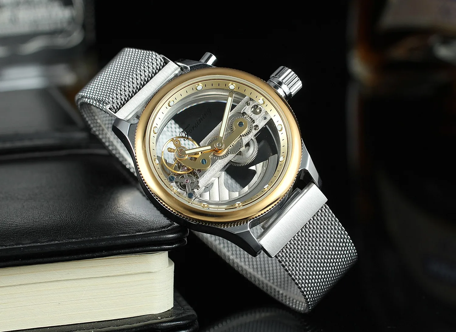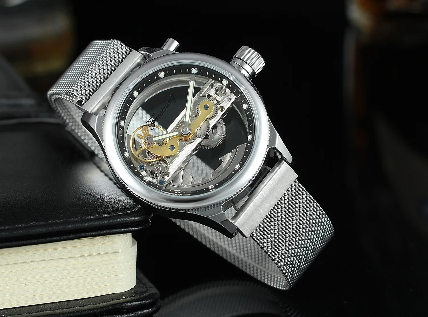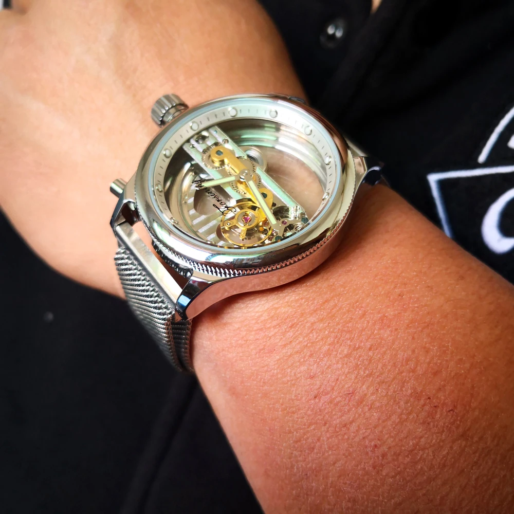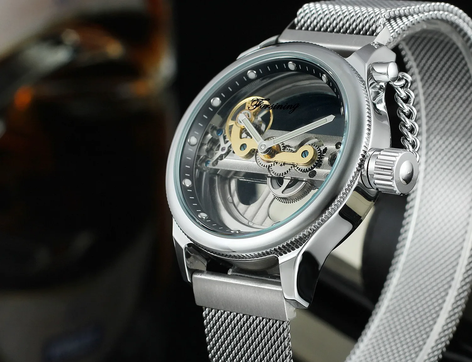 100% оригинальные часы Forsining Нержавеющая сталь чехол Защитное минеральное стекло Категории часов: мужские наручные часы Стиль: модное повседневное роскошное платье Механизм: автоматический механизм самостоятельного ветра Размеры: Чехол Диаметр: Approx.40mm Поверхность Диаметр: Approx.30.5mm Ширина ремешка часов: около 20 мм Чехол Толщина: Approx.13mm Длина Часов: около 220 мм (1 см = 10 мм = 0,394 дюйма) Тепло Примечания: 1. Пожалуйста, снимите все пленки перед использованием. 2. Пожалуйста, держите часы подальше от магнита, чтобы часы не переставали работать. 3. Есть разумный диапазон механических ошибок во время путешествия, если высокая точность требования к времени покупателя, пожалуйста, будьте осторожны, чтобы купить. Посылка: Караульная будка посылка
