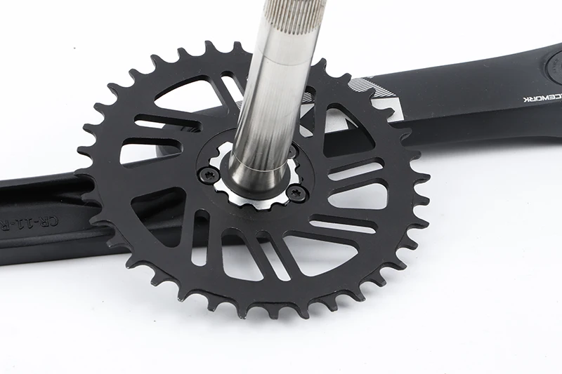 В центре кованый паук из сплава обеспечивает прочную, но легкую платформу для питания вперед, в то время как цепное кольцо RACEWROK приносит некоторые дополнительные функции удерживания цепи к столу и делает этот коленчатый набор действительно густым. RACEWORK включает в себя четко высокую и квадратную форму зуба, которая ловит цепь раньше в вращении педали, чем стандартные треугольные зубы для улучшения стабильности и удержания цепи. Узкий, острый профиль с закругленными краями фаски также помогает удерживать цепь, особенно в минимизации отклонения цепи и как правило, помогает удерживать цепь на пути.