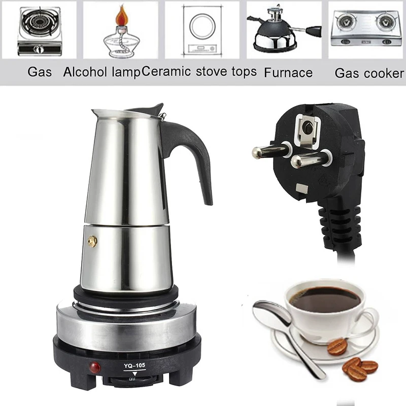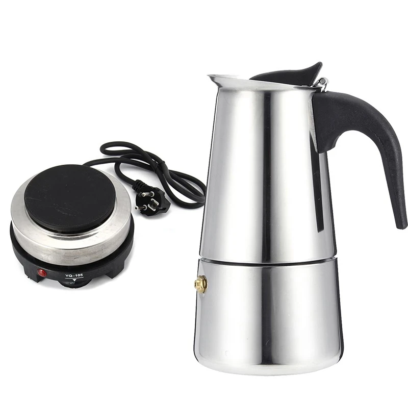 Промо-акция! 200 мл портативная Эспрессо кофеварка Moka чайник из нержавеющей стали с электрической плитой фильтр Перколятор кофейник Ket