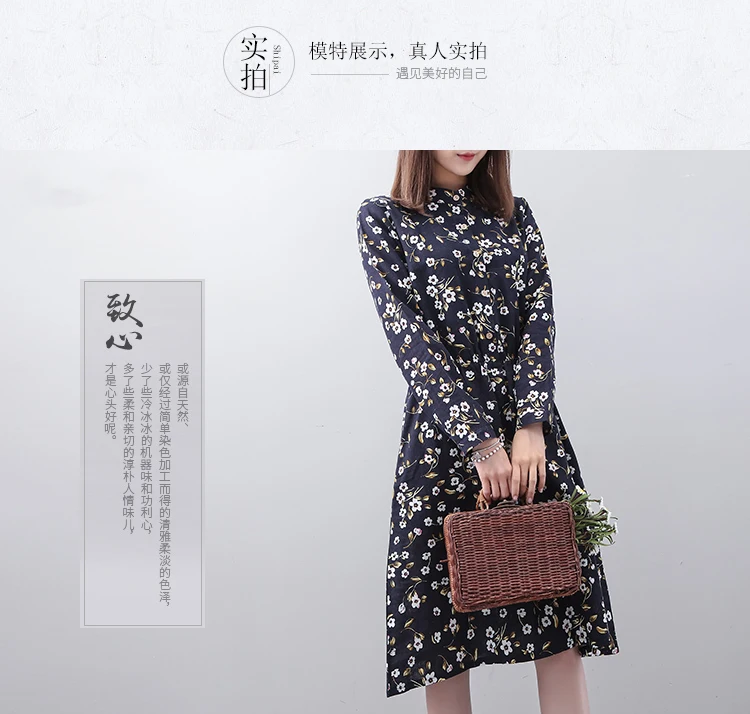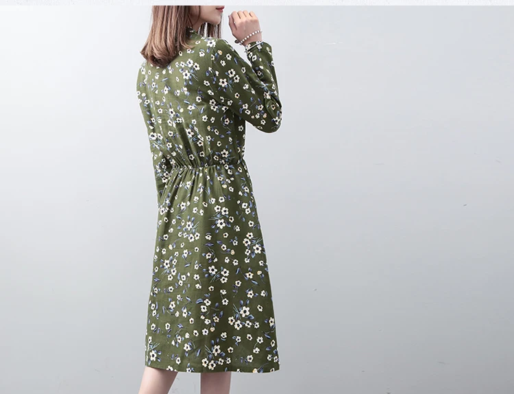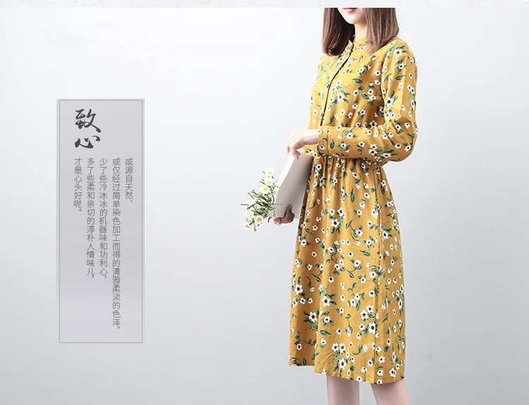 Mori Girl/весенне-осеннее платье с цветочным рисунком Плиссированное Платье-рубашка с длинными рукавами и воротником-стойкой и эластичной резинкой на талии зеленого, желтого, синего цвета M-XXL DG198
