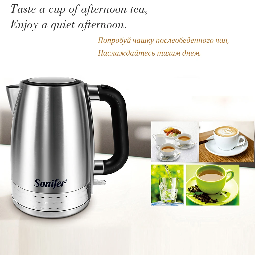 1.7л Электрический чайник из нержавеющей стали 2200 Вт бытовой Кухня автоматически выключается