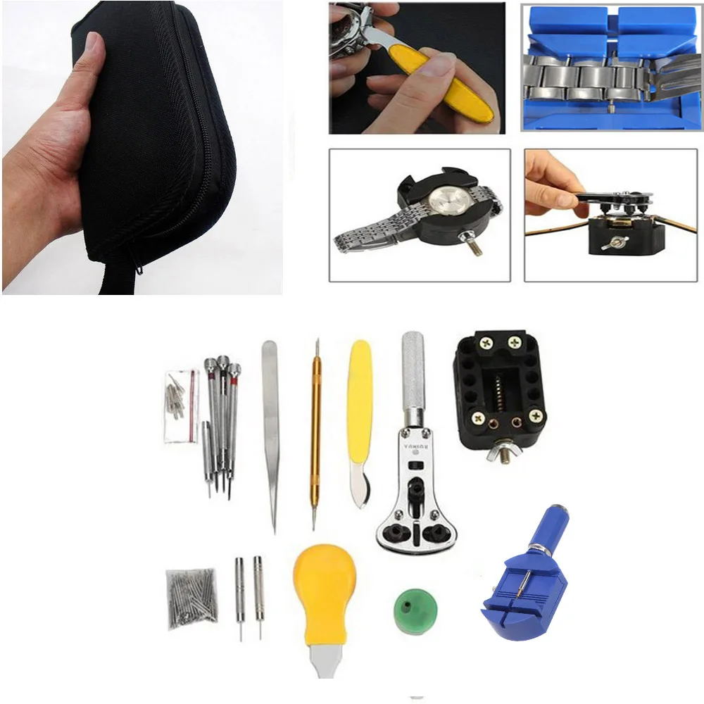 144 шт набор инструментов для ремонта часов DIY в удобный чехол для переноски с безопасной застежкой-молнией.