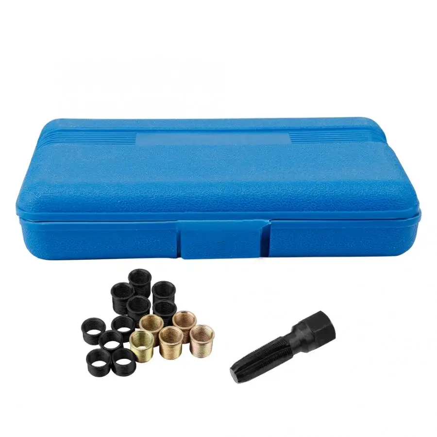 Его можно использовать для быстрого и эффективного ремонта поврежденных нитей свечей зажигания. Чистый и восстановленный порт свечей зажигания, полный комплект для удовлетворения различных потребностей. Подходит для всех видов продуктов, требующих высокой прочности нити. Удобно для установки, высокая прочность, долгий срок службы. Для удобного хранения и переноски предусмотрен пластиковый ящик.