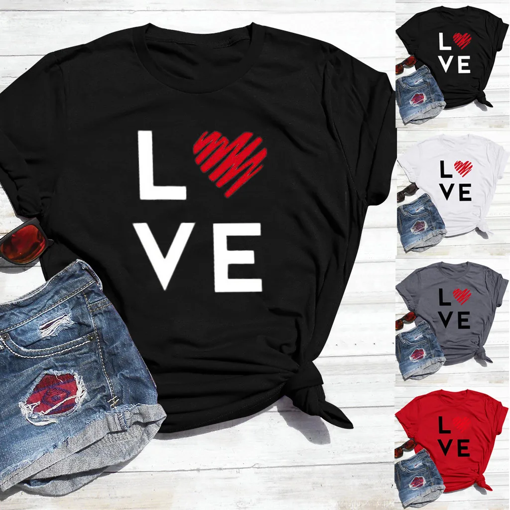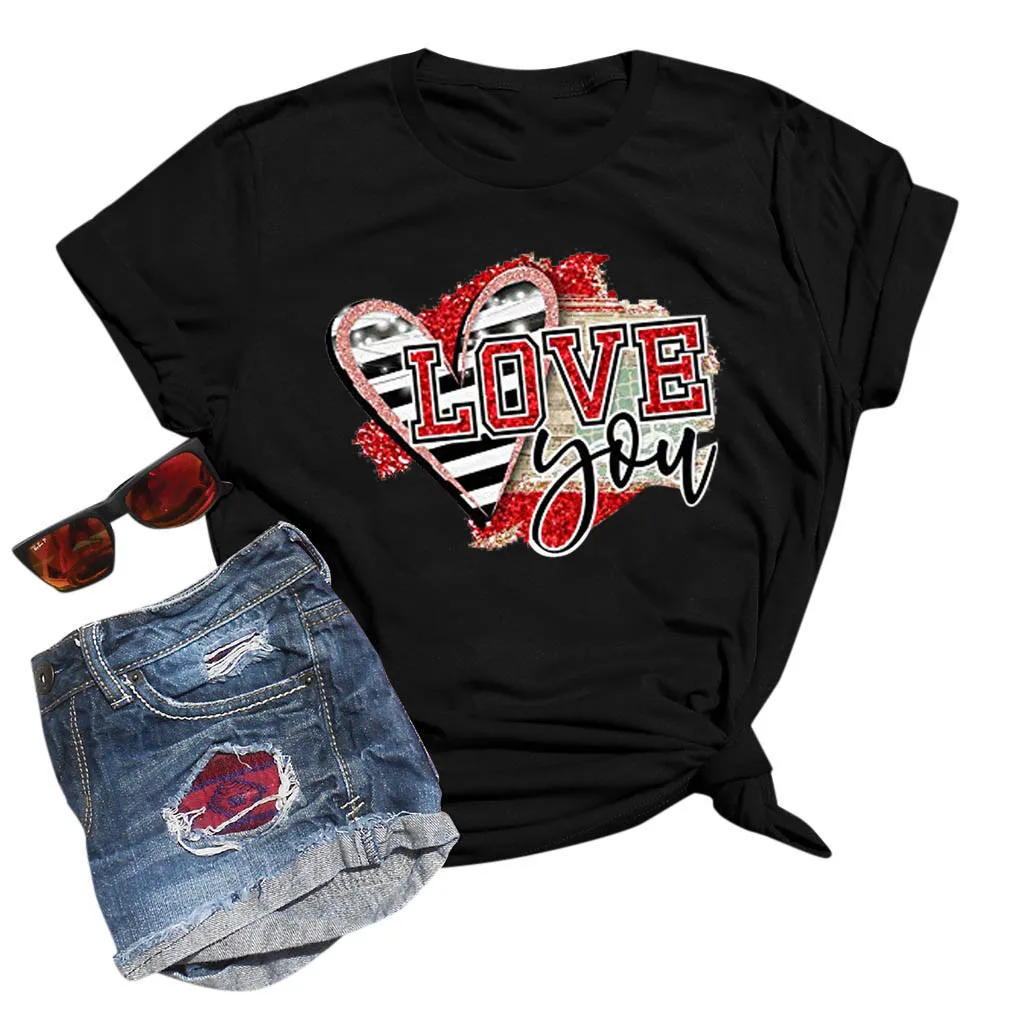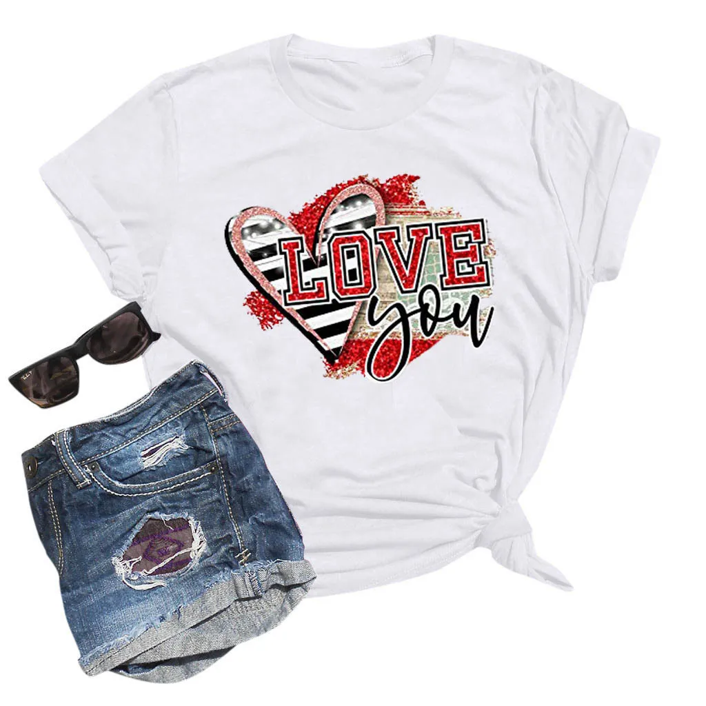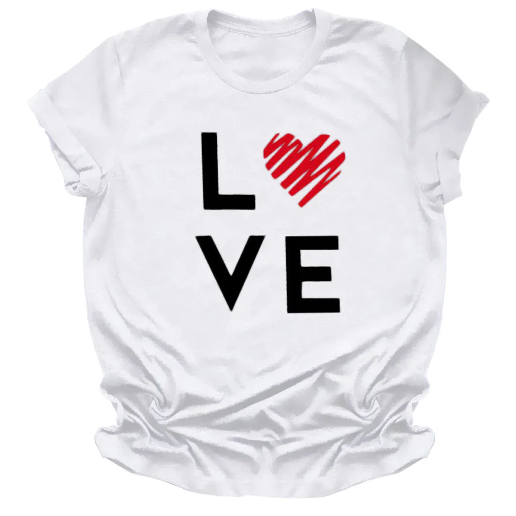 Женская Летняя Повседневная Блузка с коротким рукавом и принтом на День святого Валентина