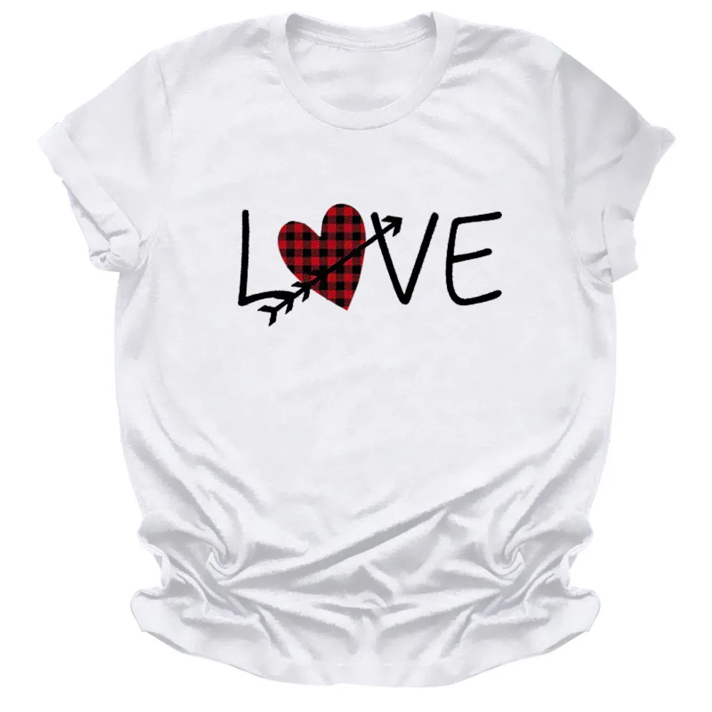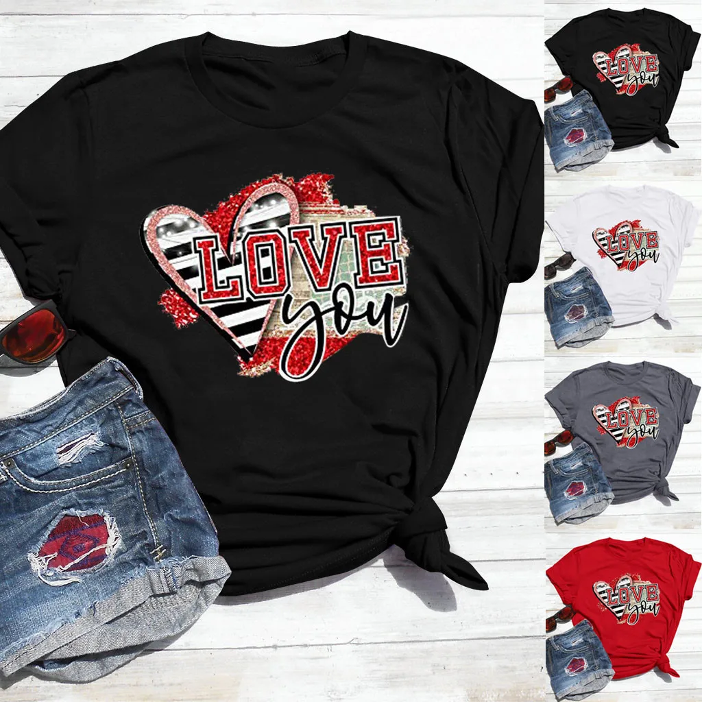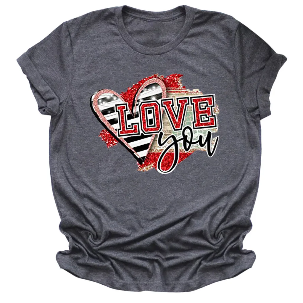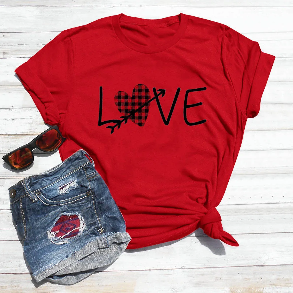 Женская Летняя Повседневная Блузка с коротким рукавом и принтом на День святого Валентина