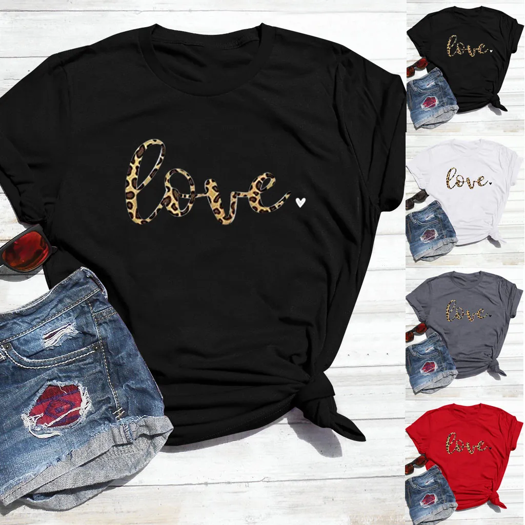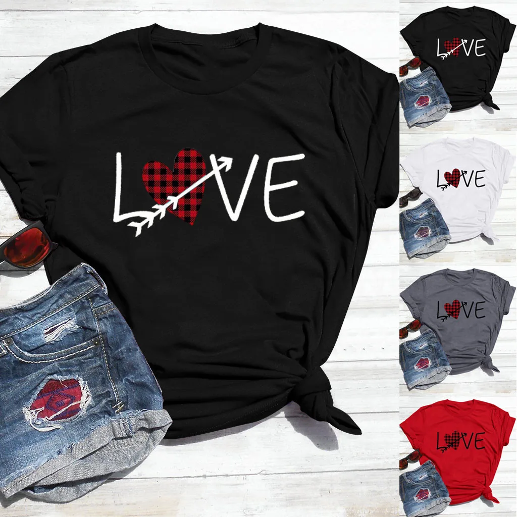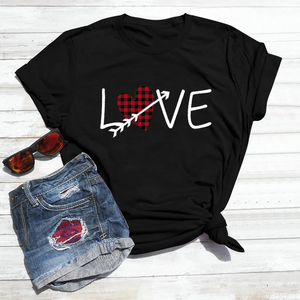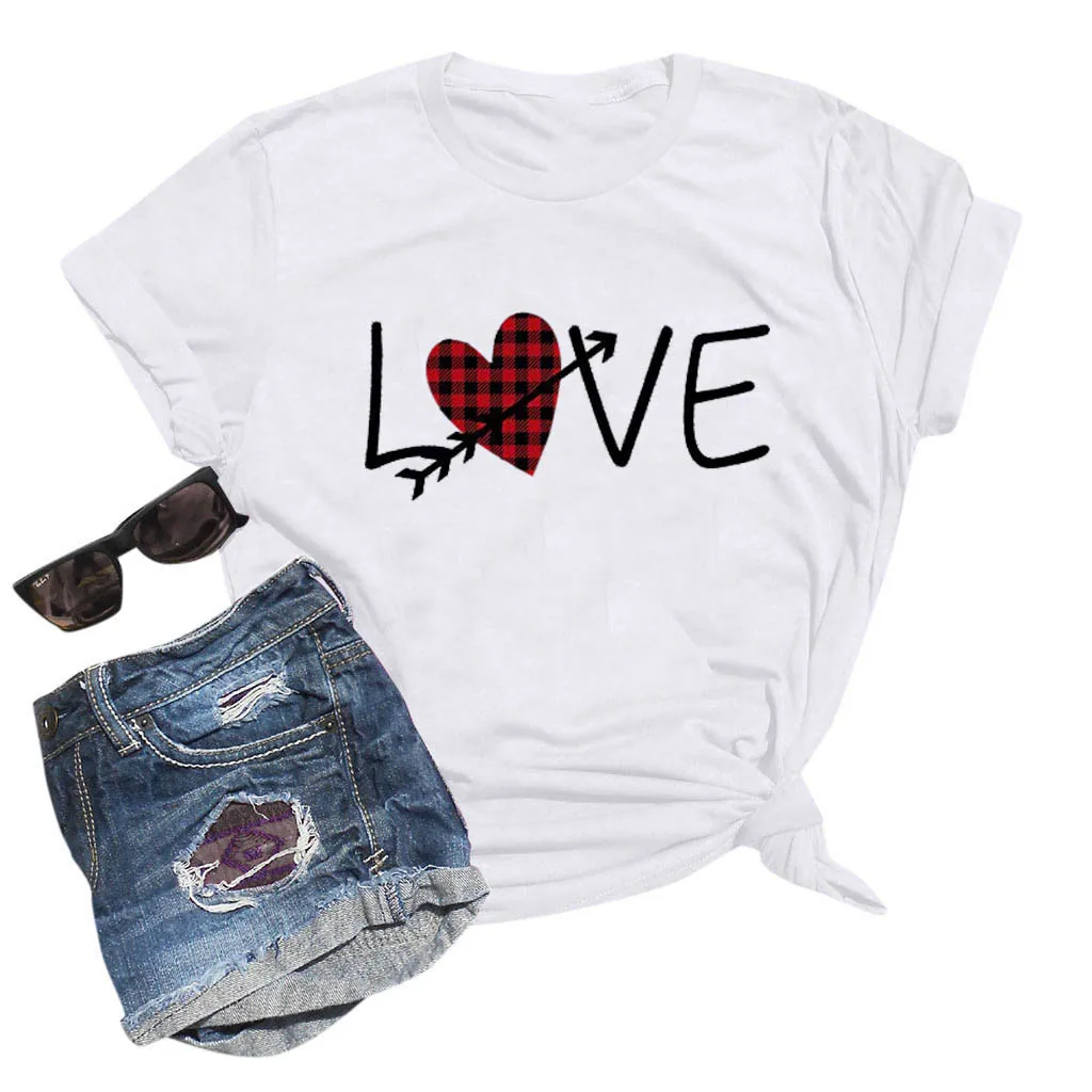 Женская Летняя Повседневная Блузка с коротким рукавом и принтом на День святого Валентина
