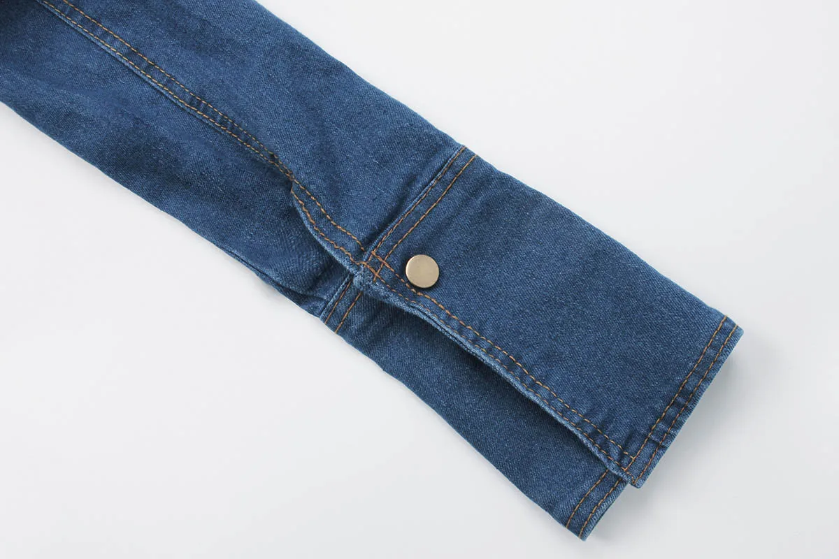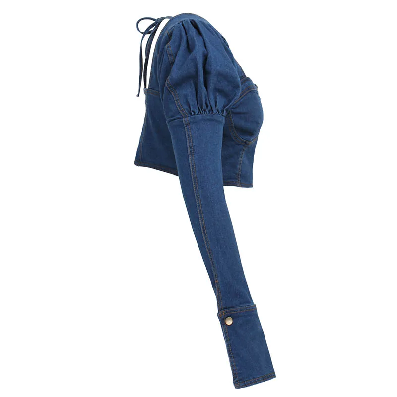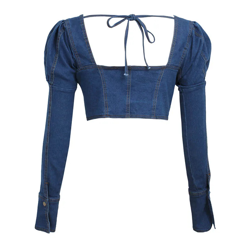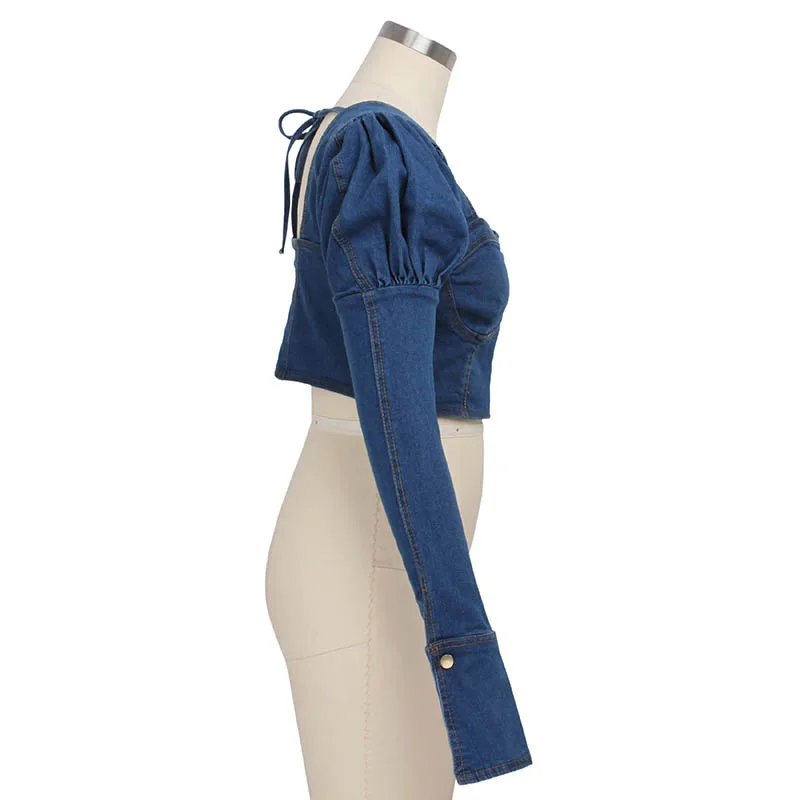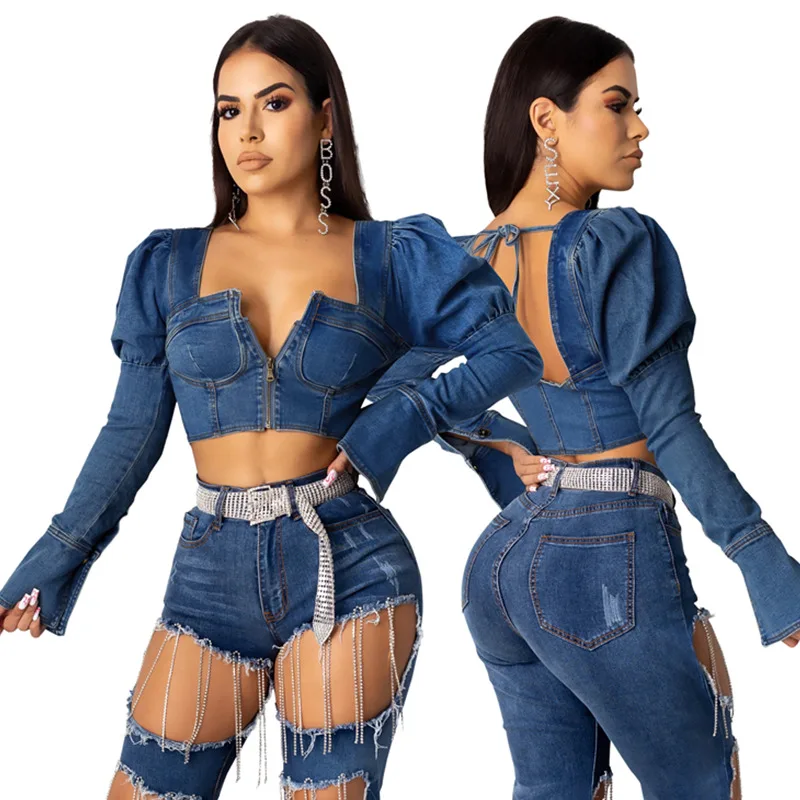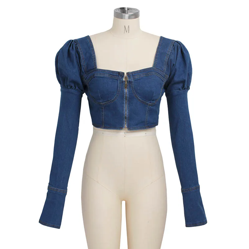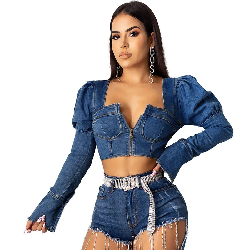 Женский Повседневный синий джинсовый пикантный укороченный топ на молнии
