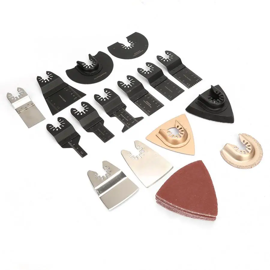 Набор состоит из 15 лезвий и 25 шлифовальных листов, может использоваться с вашим осциллирующим инструментом. Универсальный интерфейс подходит для большинства брендов машин. Изготовлен из высококачественных материалов, износостойкий и прочный. Легко погрузитесь в материал в любом месте. Для резки различных материалов, таких как дерево, пластик, мягкий металл.