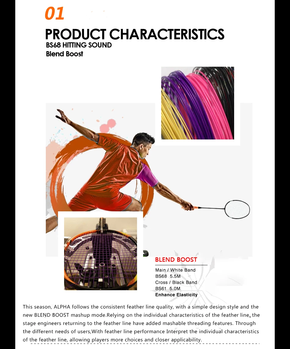 Alpha бадминтон струна удара Звуковое управление тренировочная ракетка строчка Комплексная производительность прочность BS68