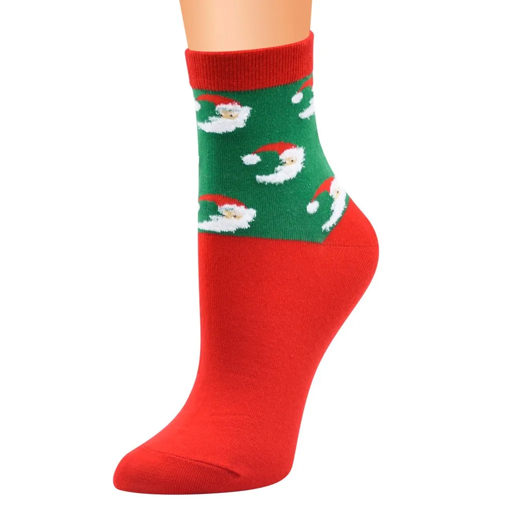 Женские рождественские красные хлопковые носки с принтом, толстые нескользящие носки-Тапочки