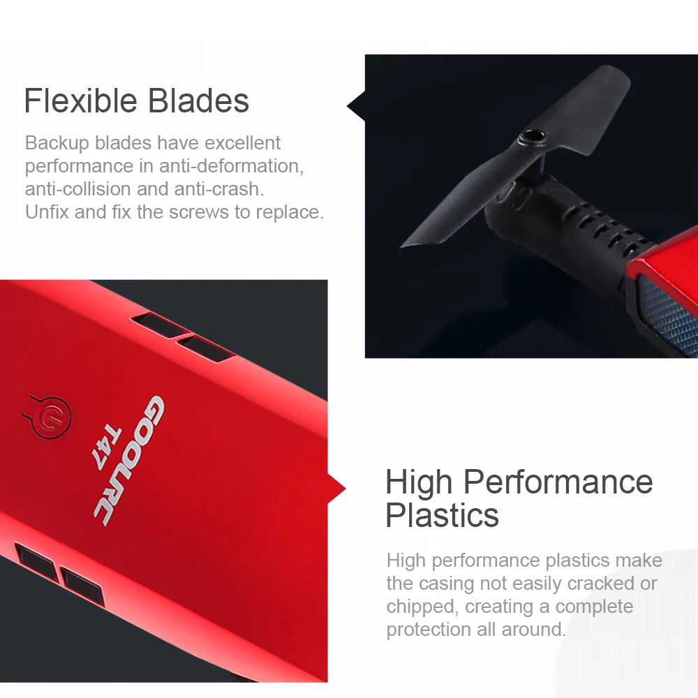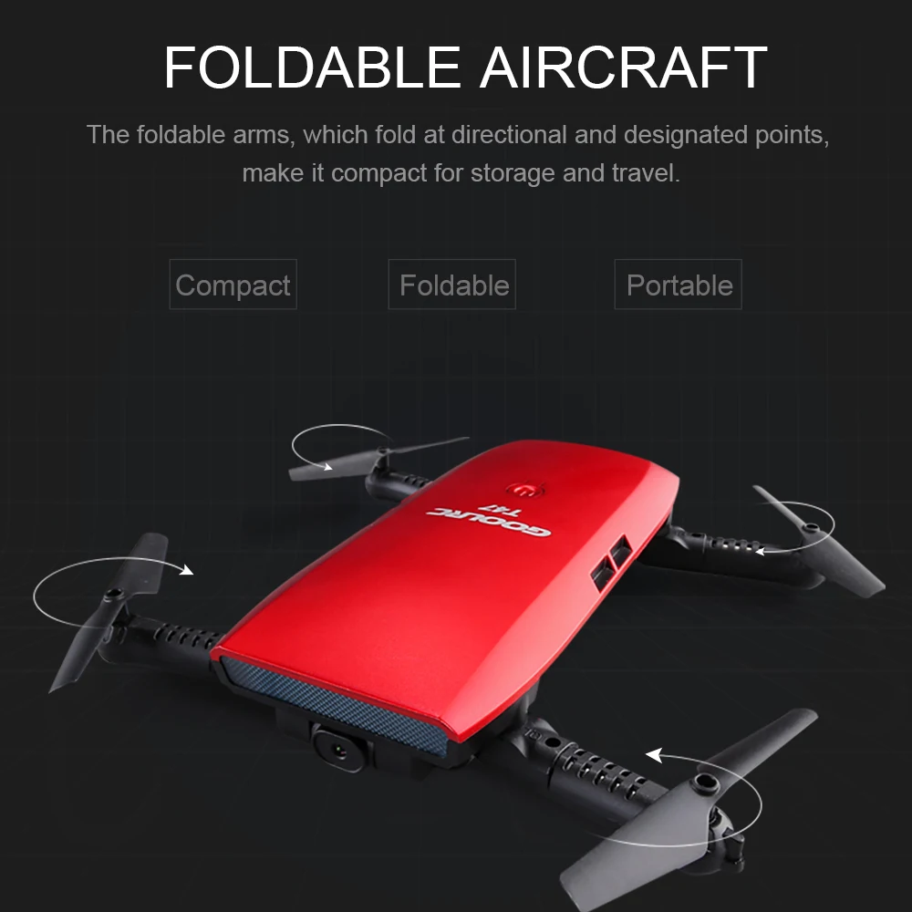 GoolRC T47-это фантастический складной Дрон с замечательным крутым внешним видом. Новая камера 720P HD для более четкого аэрофотосъемки, управление через приложение Wi-Fi с режимом гравитационного датчика. И специальный Одноручный пульт дистанционного управления с жестом датчика гравитации обеспечивает уникальный опыт управления. Отличный выбор для любителей RC.