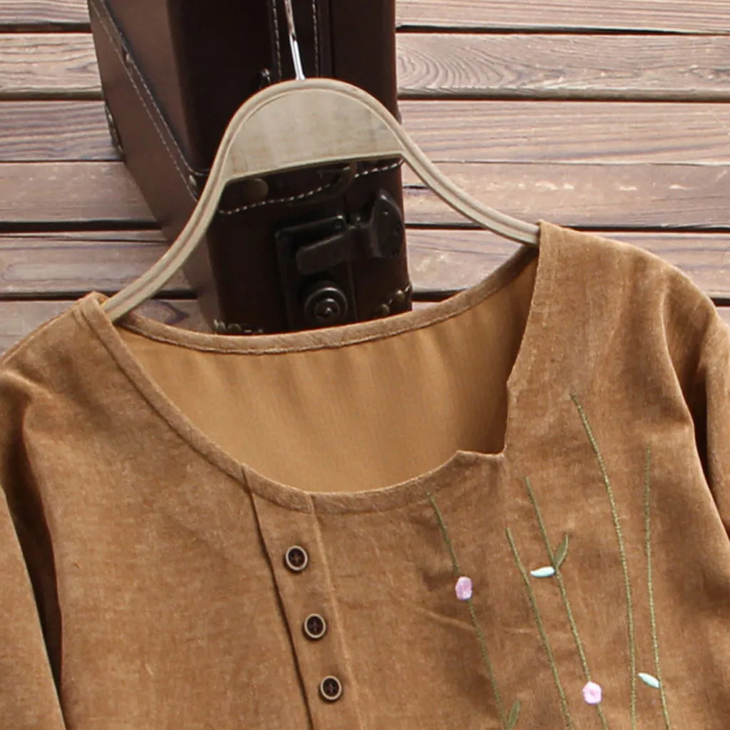 Женская тонкая Вельветовая блузка, новинка 2020, повседневные весенние топы, высококачественные винтажные Блузы с вышивкой и длинными рукавами, Femininas