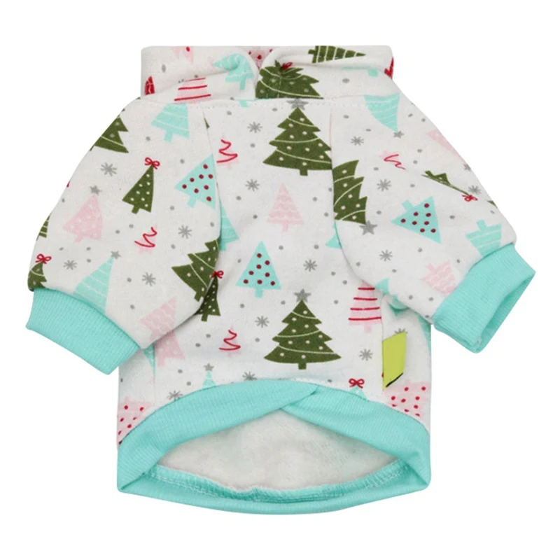 Christmas Tree Printed Dog Costume Festival Winter Hooded Coat Clothing For Small Medium Dogs