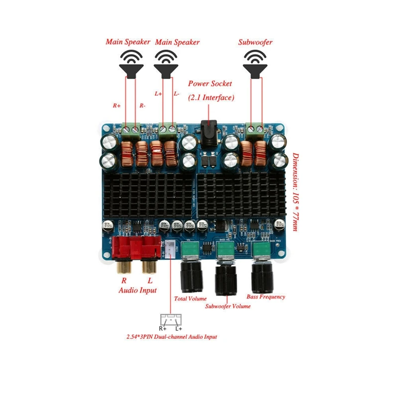 Характеристики: принимает Высококачественный чип цифрового усилителя TPA3116. Качество звука очень хорошее, высокая эффективность и усиленная мощность.