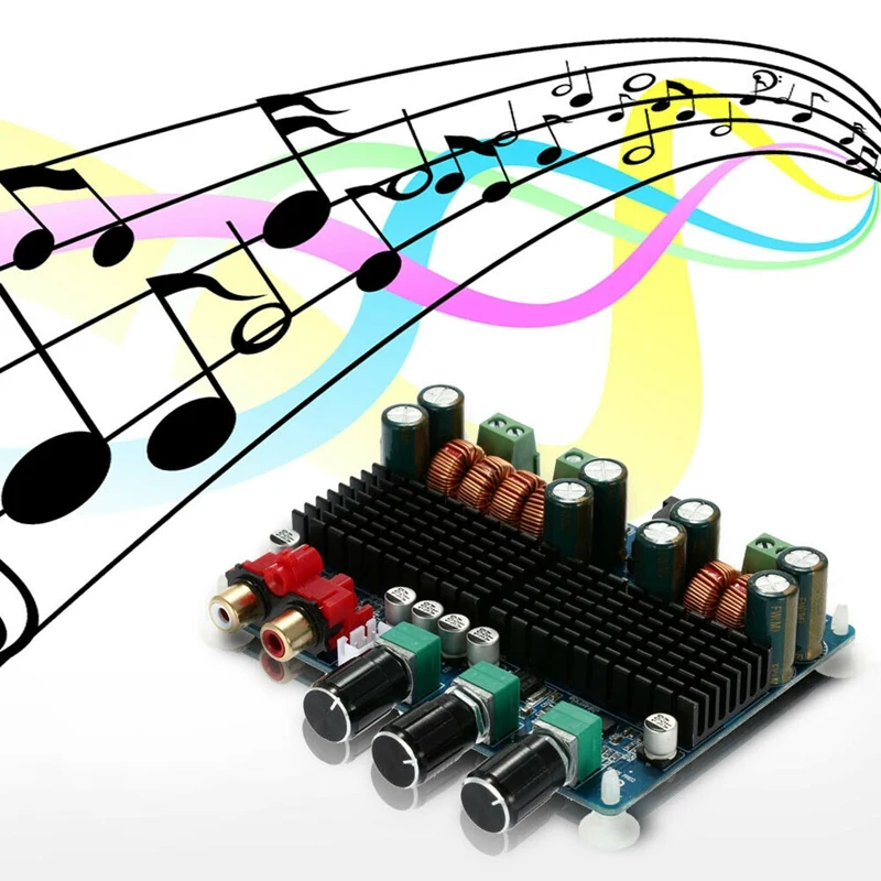 50 Вт * 2 + 100 Вт 2,1 каналов (левый/правый канал и канал сабвуфера), высокая эффективность и низкий нагрев.