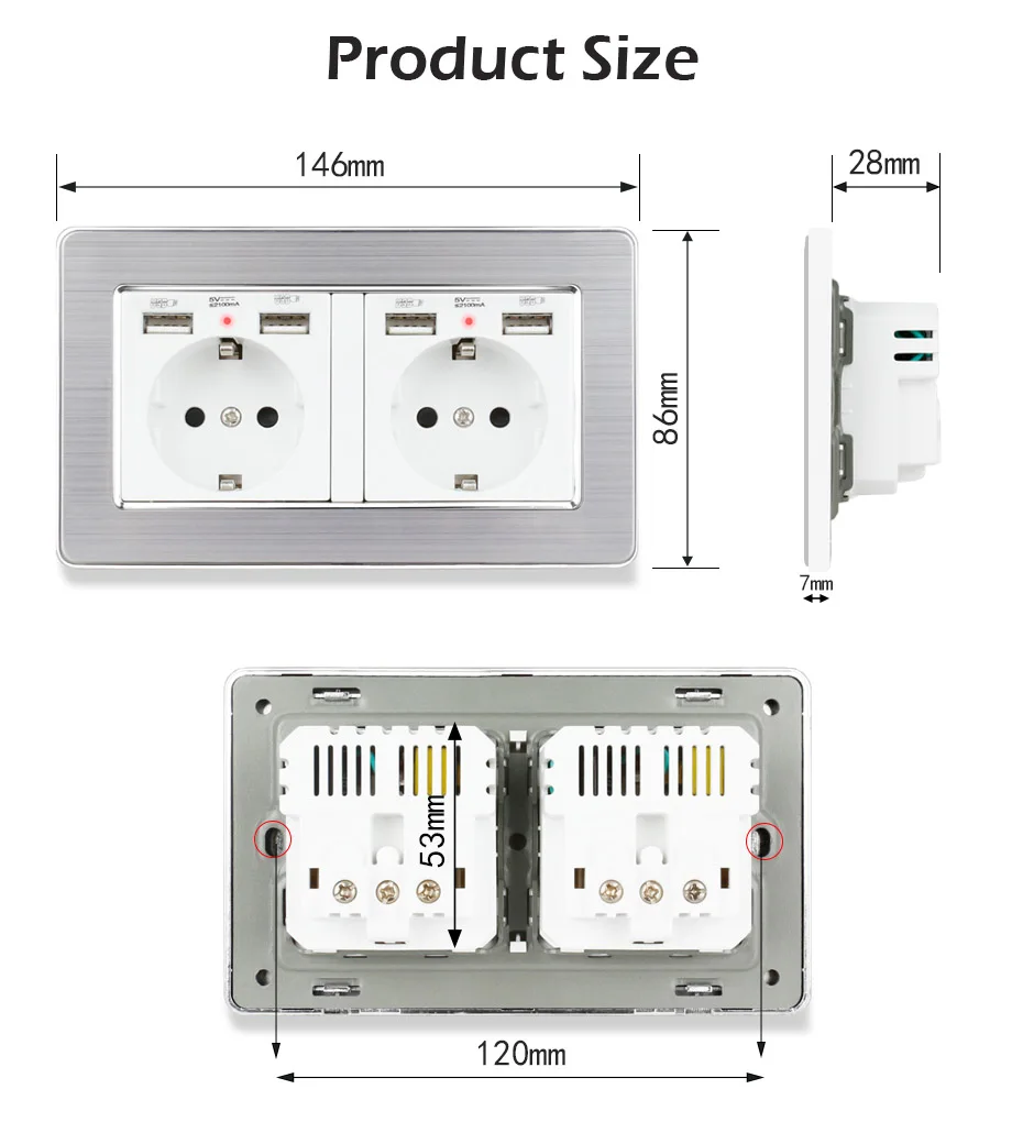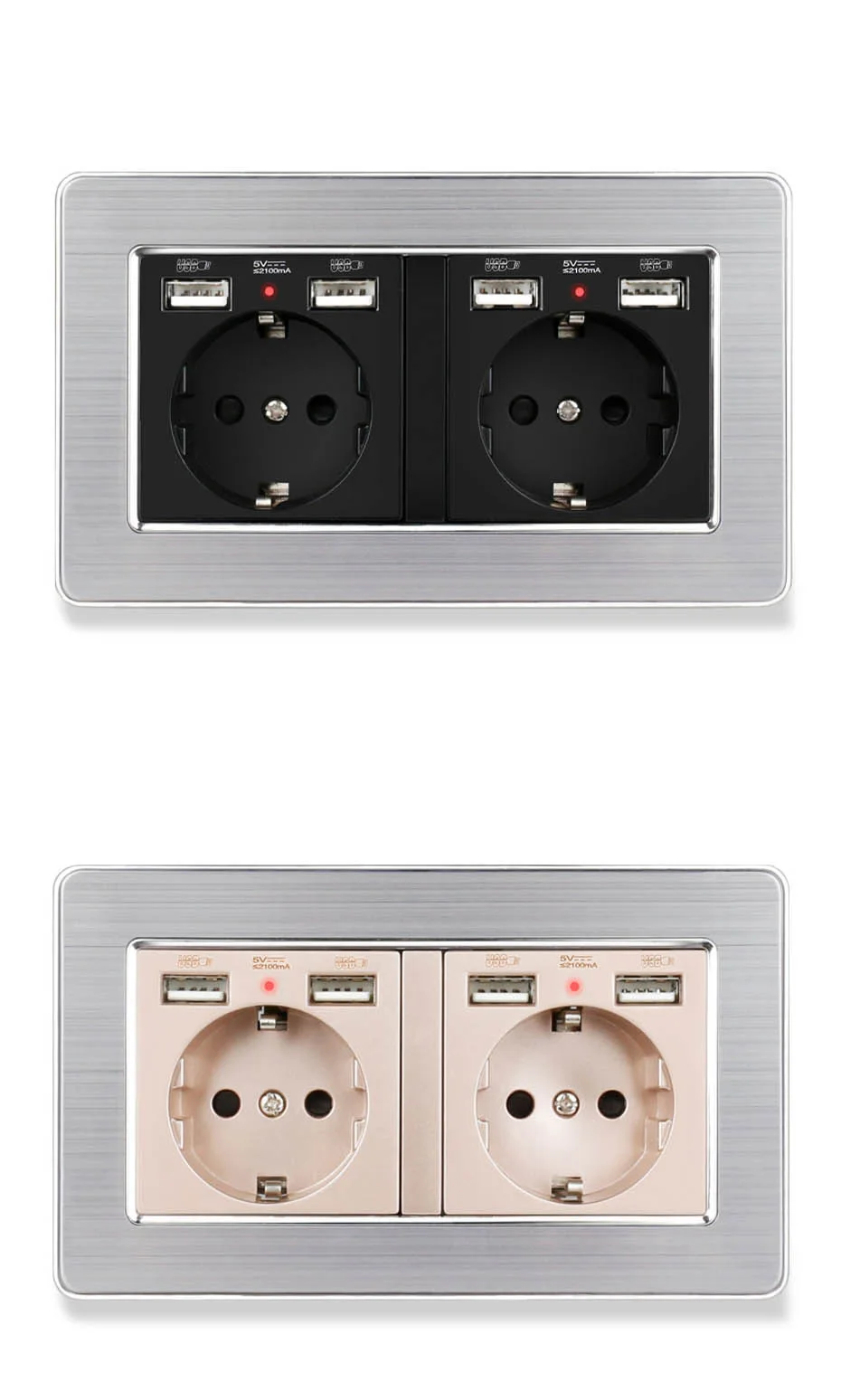 Esooli черная белая Золотая 2 банды настенная розетка стандарта ЕС с 4 usb-портом для зарядки скрытый мягкий светодиодный индикатор панель из нержавеющей стали