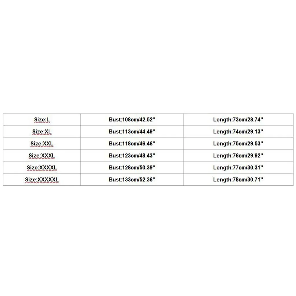 Размер Обхват груди Длина L 108 см/42,52'' 73 см/28,74'' XL 113 см/44,49'' 74 см/29,13'' XXL 118 см/46,46'' 75 см/29,53'' XХХL 123 см/48,43'' 76 см/29,92'' XXXXL 128 см/50,39'' 77 см/30,31'' XXXXXL 133 см/52,36'' 78 см/30,71''