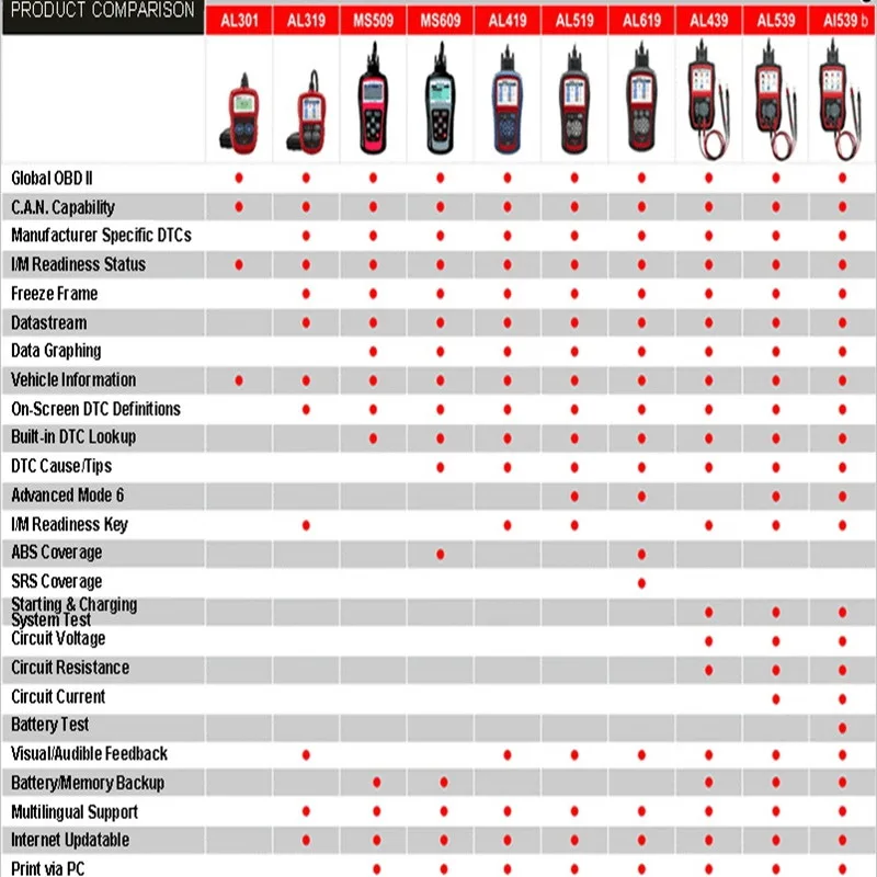 Считыватель кодов MS509 OBDII/EOBD поддерживает все Девять режимов тестирования OBDII