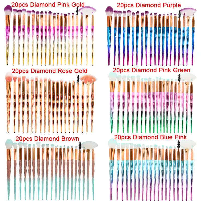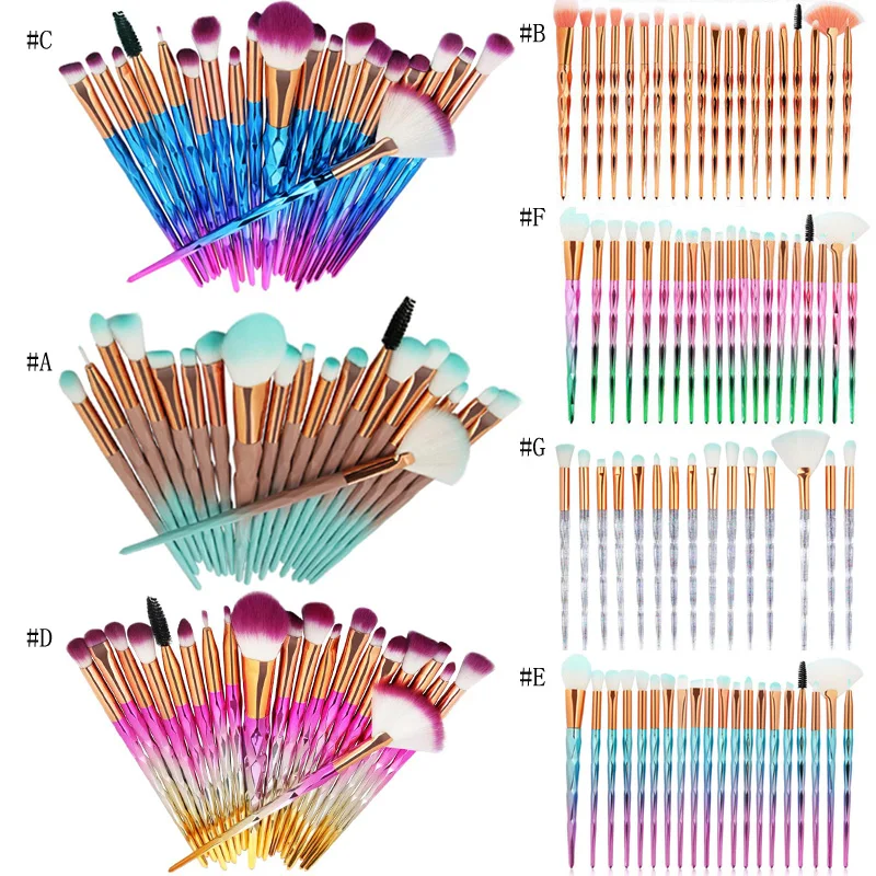 20 шт алмазные Единорог тени для век бровей смешивание кисти набор кисти для макияжа глаз