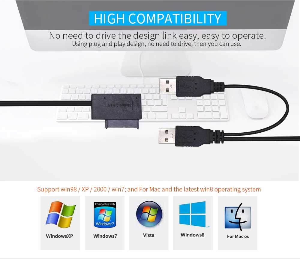 TISHRIC USB 2,0 для SATA 7 + 6 13 Pin адаптер конвертер кабель Поддержка HDD Caddy внешний SSD HDD жесткий диск для ноутбука CD/DVD