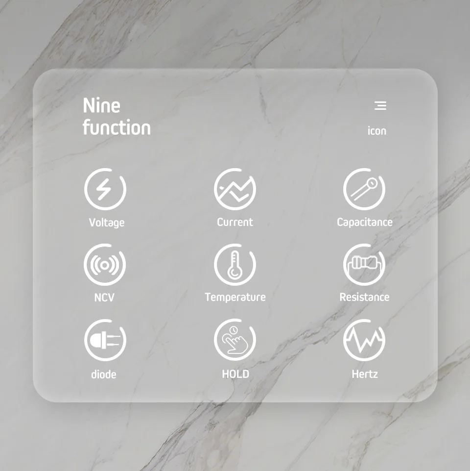 ANENG Q1 True-RMS цифровой мультиметр Кнопка 9999 отсчетов с аналоговым гистограммой AC/DC Напряжение Амперметр Ток Ом Авто/руководство Пожалуйста, обратите внимание, что вы должны прочитать руководство по эксплуатации, прежде чем использовать, в противном случае вы сожжете устройство с неправильной операцией. Характеристики: Бренд ANENG Номер модели Q1 Дисплей (ЖК-дисплей) 9999 отсчетов диапазона Авто/руководство Материал ABS + TPE скорость обновления 3 раза/секунду Ture RMS да хранение данных Да Измерение относительного значения да индикация низкого заряда батареи да Подсветка да автоматическое выключение да Рабочая Tenperature 0 ~ 40 °C Hunidity 75% Растяжка для хранения-20 ~ 60 °C Hunidity 80% Точность диапазона Funtion Напряжение постоянного тока (в) 999.9 мВ/9,999 в/99,99 в/999,9 В ±(0.5% + 3) Напряжение постоянного тока (МВ) 9,999мв/99,99мв ±(0.5% + 3) Напряжение переменного тока (в) 999.9 мВ/9,999 в/99,99 в/750,0 В ±(1.0% + 3) Напряжение переменного тока (МВ) 9,999мв/99,99мв ±(1.0% + 3) Постоянный ток (mA & A) 999.9 мА/9.999A ±(1.0% + 3) Постоянный ток (A) 9999A ±(0.8% + 3) Переменный ток (mA & A) 999.9 мА/9.999A ±(1.0% + 3) Ток переменного тока (A) 9999A ±(1.0% + 3) Сопротивление 99,99 ±(1.0% + 3) Сопротивление 999,9/9,999 k/99,99 k/999,9 k / ±(0.5% + 3) Сопротивление 9,999 м ±(1.5% + 3) Сопротивление 99,99 м ±(3.0% + 5) Конденсатор 9.999nF ±(5.0% + 20) Конденсатор 99.99nF /999.9nF /9.999F /99.99F /999.9F ±(2.0% + 5) Конденсатор 9.999mF ±(5.0% + 5) Частота 99,99 Гц/999,9 Гц/9,999 кГц/99,99 кГц/999,9 кГц/2,000 МГц ±(0.1% + 2) Рабочий цикл 1% ~ 99% ±(0.1% + 2) Диод: Да непрерывность: Да NCV: Да Температура (-20 ~ 1000)° /(-4 ~ 1832)° ±(2.5% + 5) Мощность 2*1,5 в AA (не входят в комплект) Частота образцов 3 раза в секунду Содержание упаковки: 1 мультиметр 1 х тестовый свинец + датчик температуры 1 x Руководство пользователя 1 х сумка для хранения 1x16 шт испытательный зонд Примечание: 1. Не превышайте максимальное значение, указанное в спецификации; 2. Не входите напряжение в режиме тока, режим сопротивления, режим диода, режим непрерывности или температурный режим; 3. Не используйте продукт, когда батареи или крышка батареи не помещаются должным образом; 4. Выключите продукт и удалите Тестовые провода из тестовых точек перед заменой батарей или предохранителей. 5. Не входное напряжение превышает 36 В постоянного тока или 25 В переменного тока, когда вы находитесь в настройке измерительного тока.