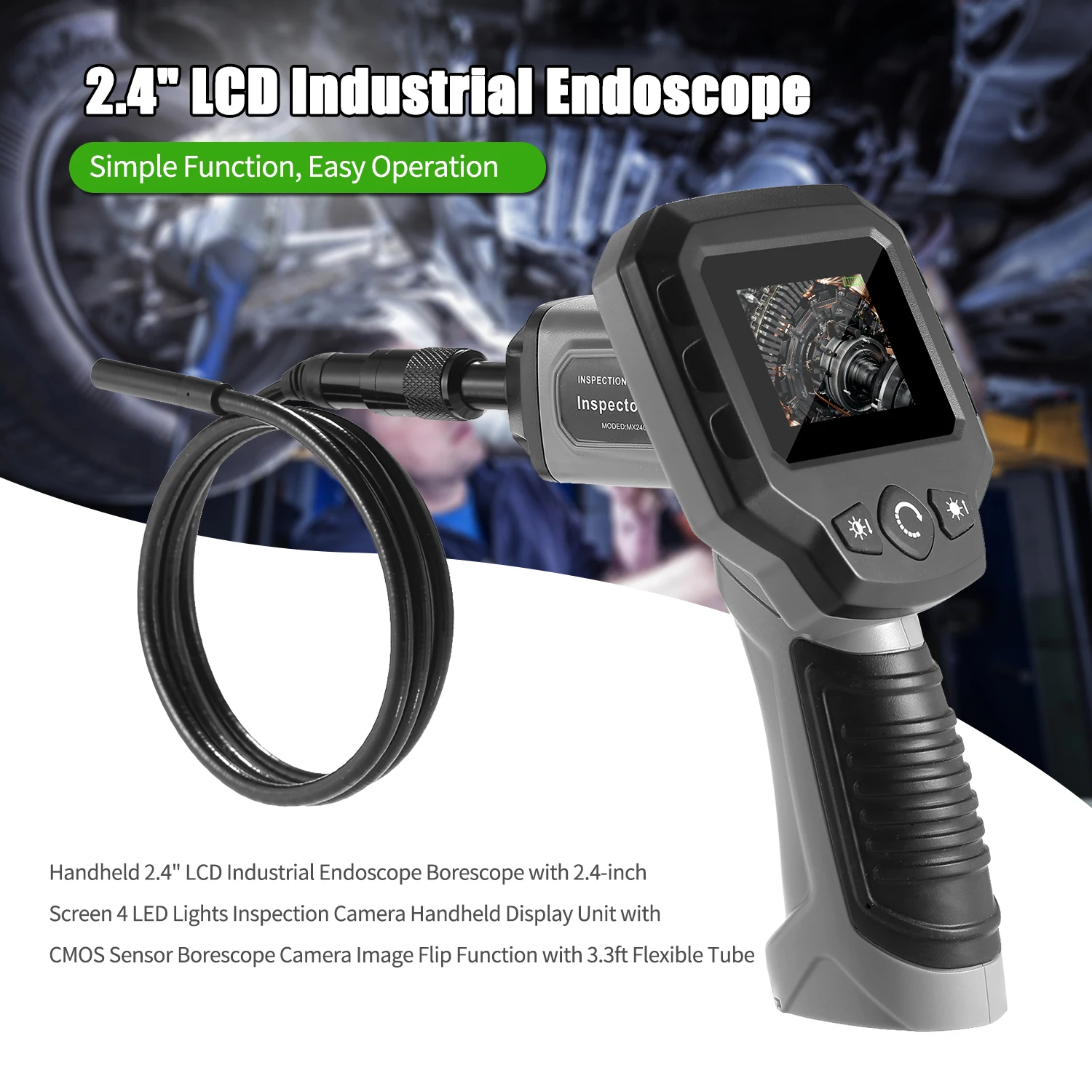 Уровень водонепроницаемости IP67: камера и трубка были водонепроницаемы IP67, предназначены для Подводного Осмотра (Не погружайте ручку камеры или экран дисплея в воду).