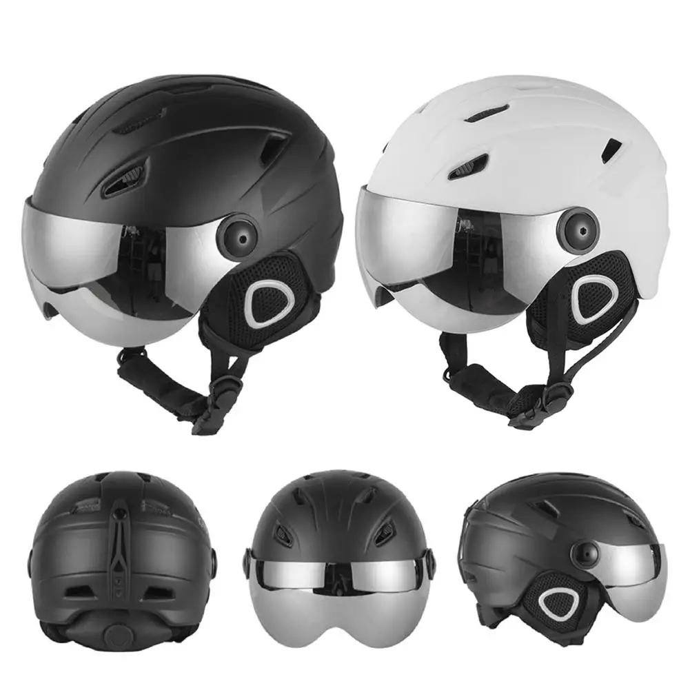 1. Полный комплект шлемов и лыжных очков: снежный спортивный шлем с лыжными очками необходим для тех, кто любит Зимние виды спорта. Шлем и лыжные очки эффективно обеспечивают полную защиту головы. Вам будет очень весело кататься на лыжах, кататься на коньках, сноуборде или заниматься другими зимними видами спорта!1 х сумка для хранения