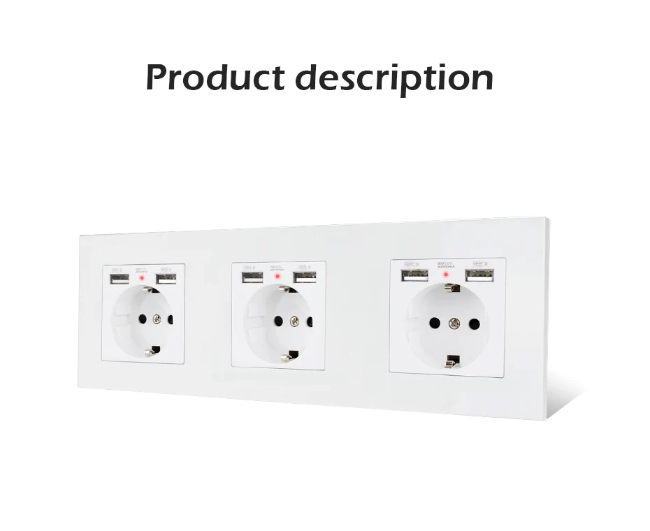 Настенная розетка стандарта ЕС Esooli с 6 USB зарядным портом для мобильного, скрытый мягкий светодиодный индикатор, пластиковая панель для ПК 258*86 мм