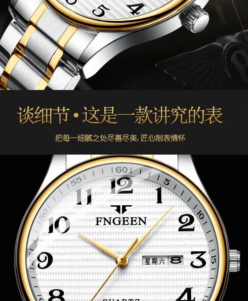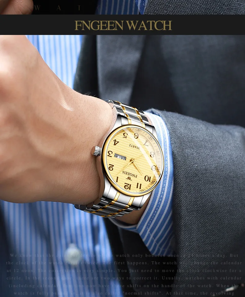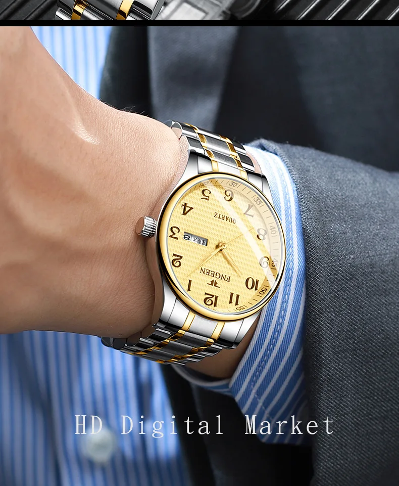 FNGEEN часы для мужчин montre homme Цифровой дисплей мужские часы кварцевые наручные часы средний возраст золотые водонепроницаемые часы Reloj Hombre