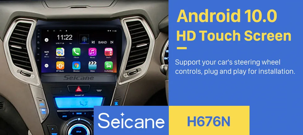 Seicane 2Din android 10.0 2GB RAM 32GB ROM Car Radio Multimedia Player For 2013 2014 2015 2016 2017 Hyundai IX45 support DVR