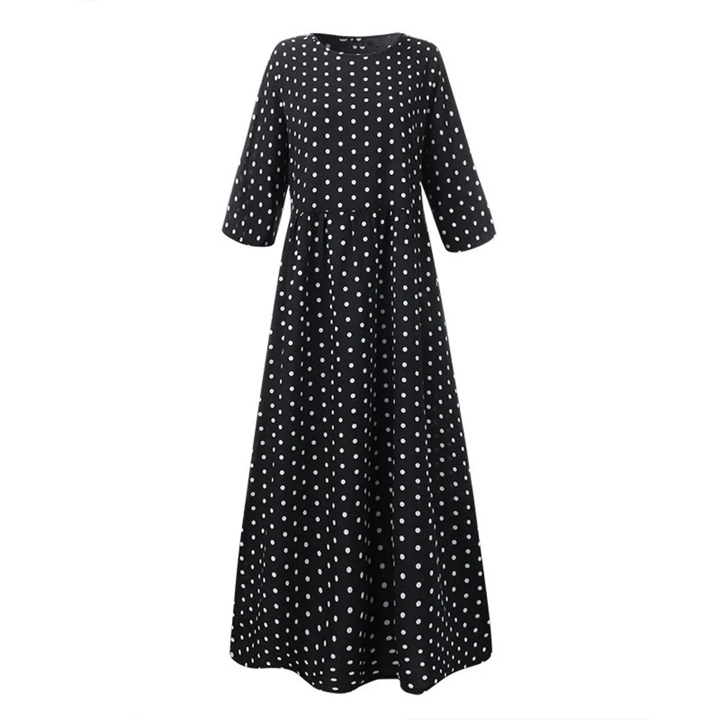 Женское весеннее модное богемное длинное платье в горошек