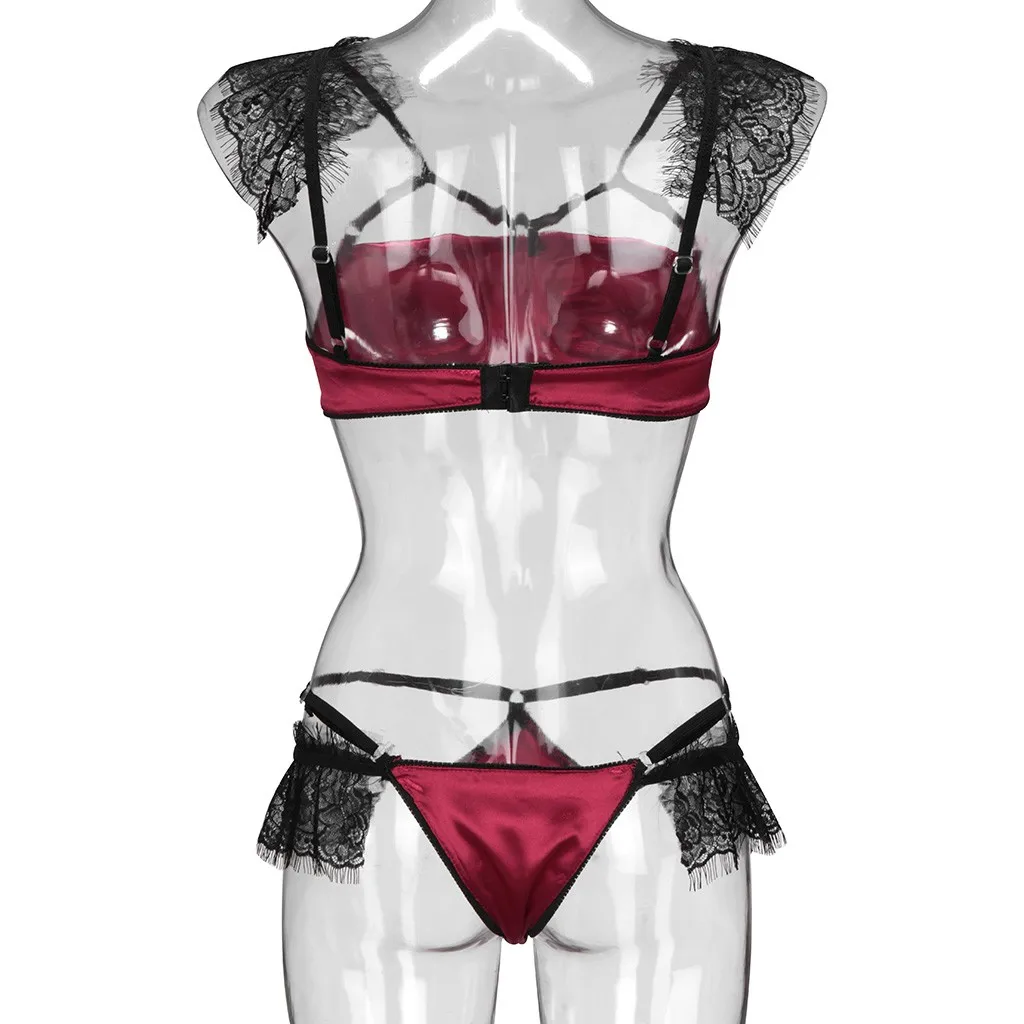 Сексуальный женский кружевной бюстгальтер без стального кольца, собранный бюстгальтер и тонкие прозрячные трусики в комплекте, нижнее белье, пижамы