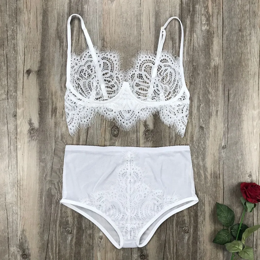Женское кружевное сексуальное женское белье размера плюс, беспроводной бюстгальтер, трусики, комплект нижнего белья, S-XL