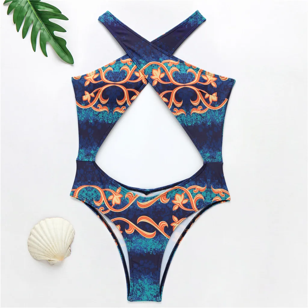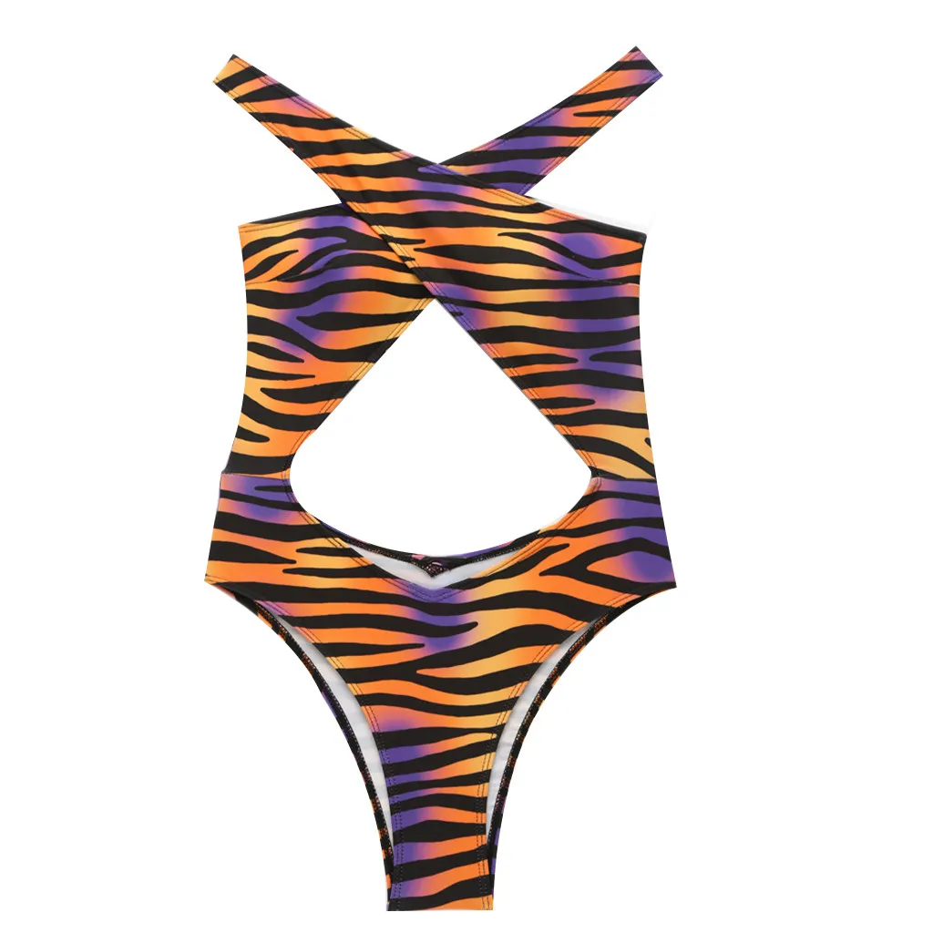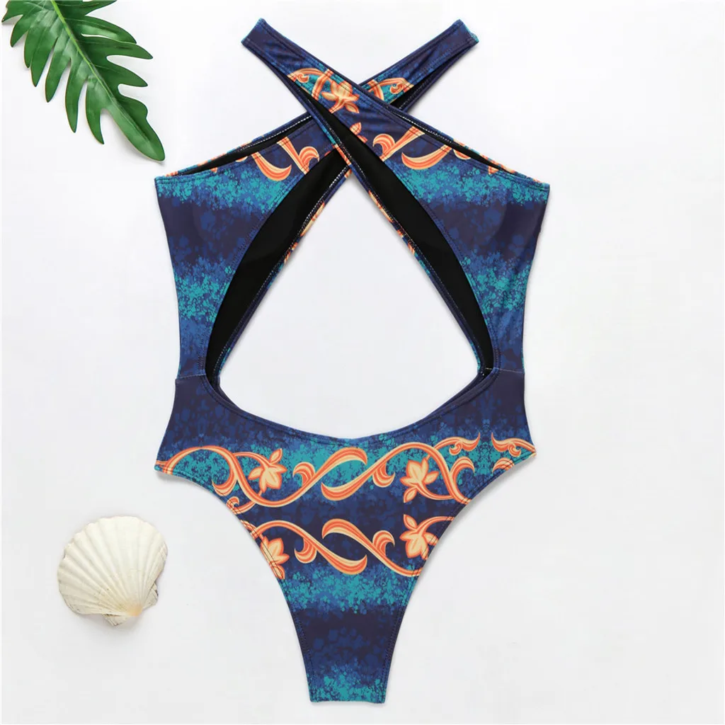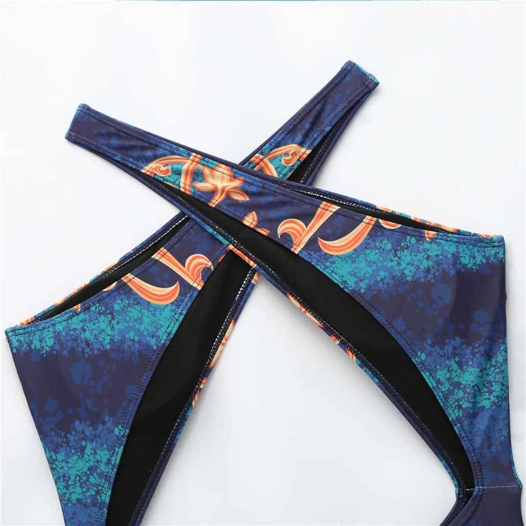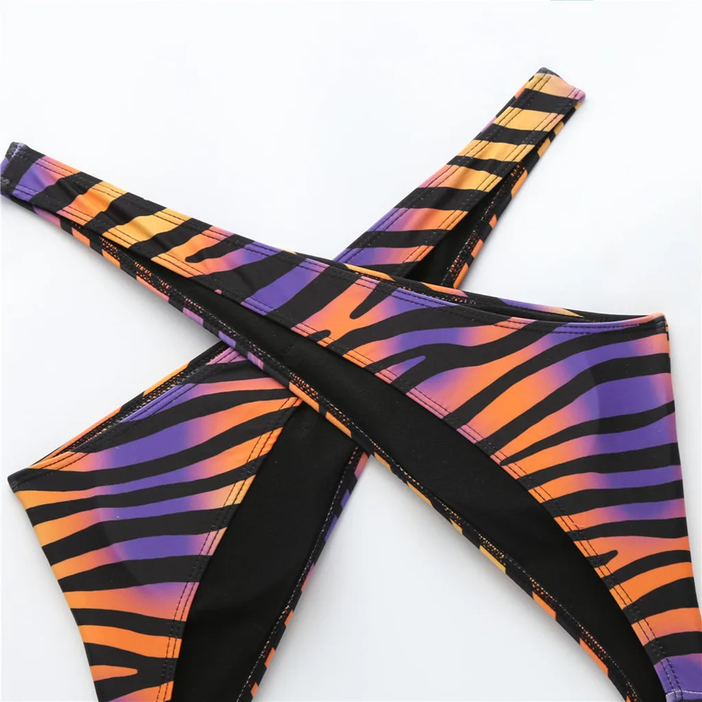 Женский купальник-бикини пуш-ап с перекрестным принтом