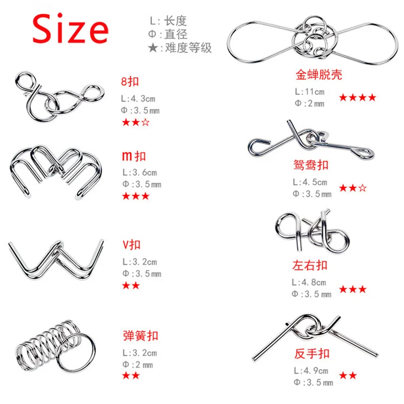 -Этот металлический набор головоломок состоит из 8 классических металлических пазлов, все эти Пазлы очень Классические и популярные, очень идеально подходят для детей и взрослых.