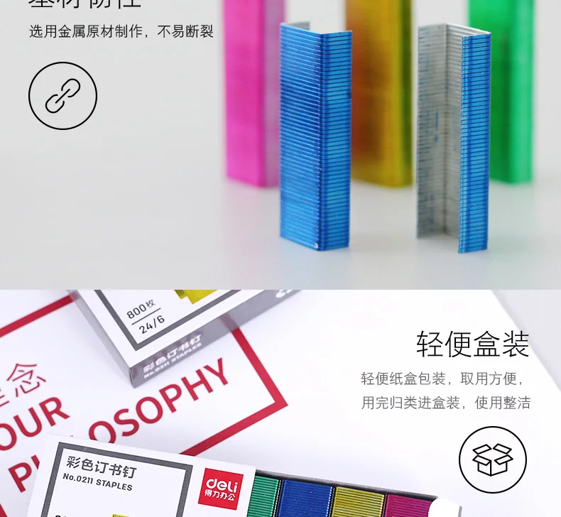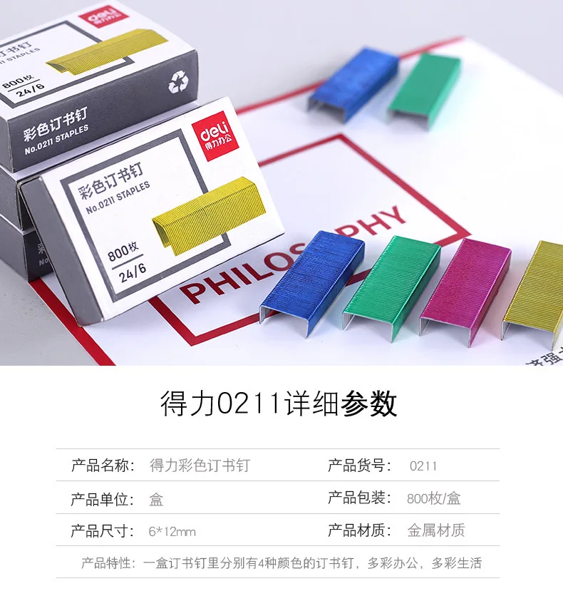 Эффективные цветные скобы 0211, 1 коробка, 24/6 однородных гвоздей, 12 #, цветной степлер для переплета, игольчатый файл, привязка документов