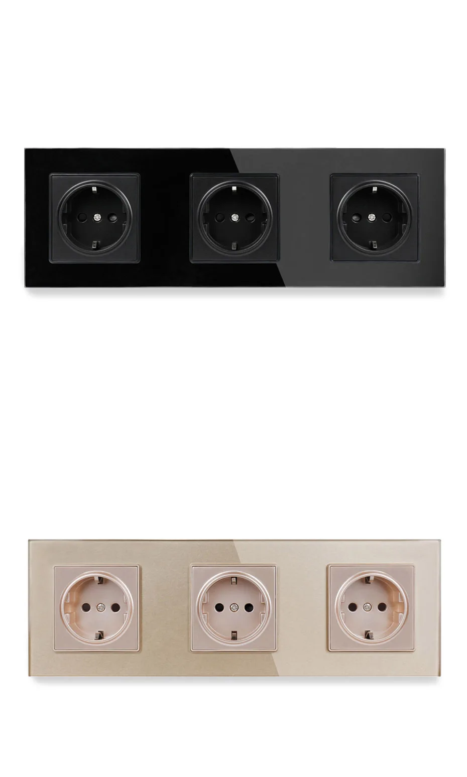 Esooli стандарт ЕС серая панель из хрустального стекла 3 банды розетка электрическая тройная розетка заземленная 16A 258*86 мм