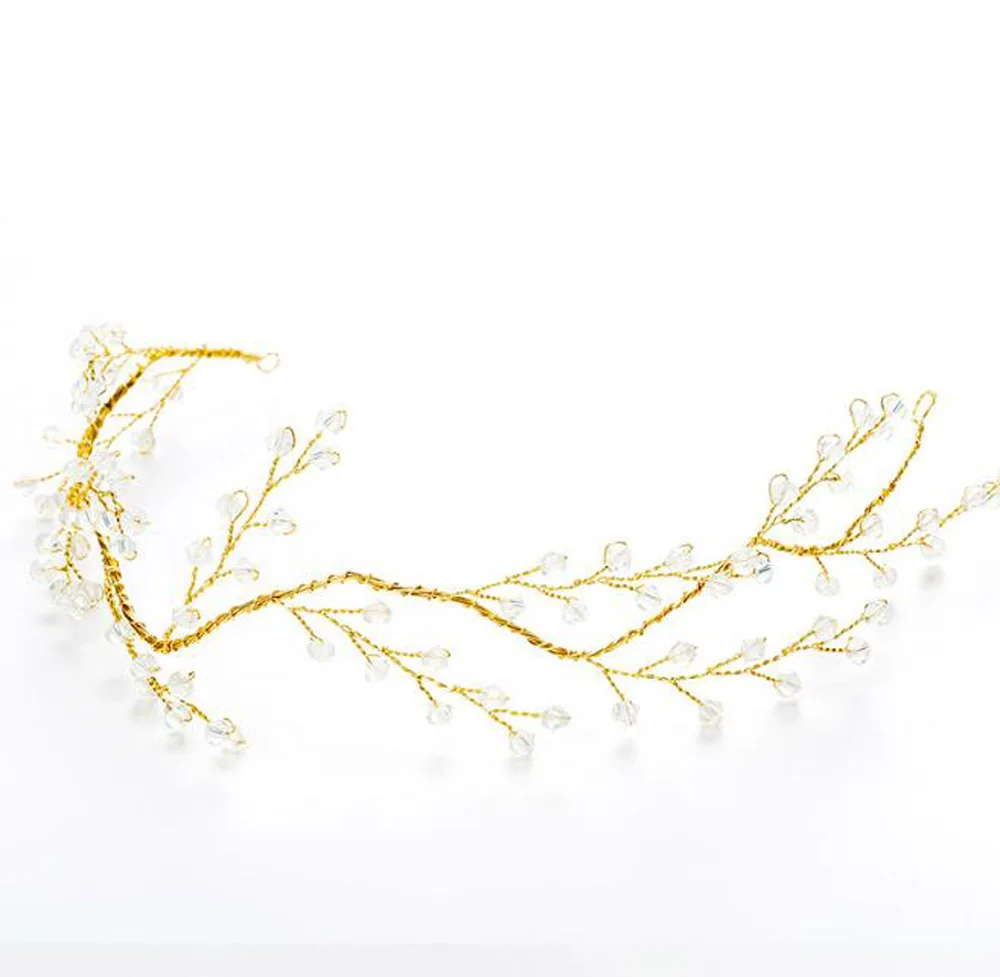 Материал: медная проволока, кристалл. Этот предмет очень универсален и можно носить во многих прическах из повязки на голову, задника или вплетать в хвостики и косички. Украшенные с металлическими листьями и к требованиям заказчика; Сверкающие стразы. Провод гибкий и простой в форме. Его можно носить с лентами или без, на каждом конце есть небольшая проволочная петля, а также, если вы хотите также закрепить ее.