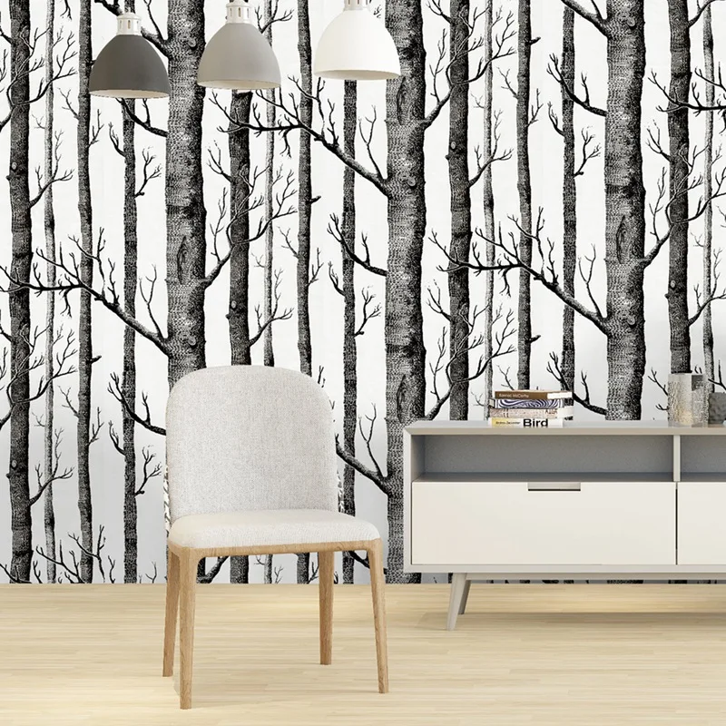 Black White Birch Tree Wallpaper for Bedroom Modern Design Living Room Wall Paper Roll Rustic Forest Woods Wallpapers