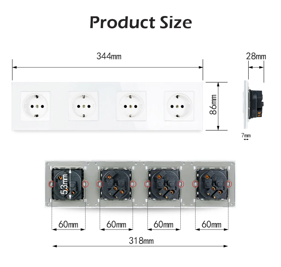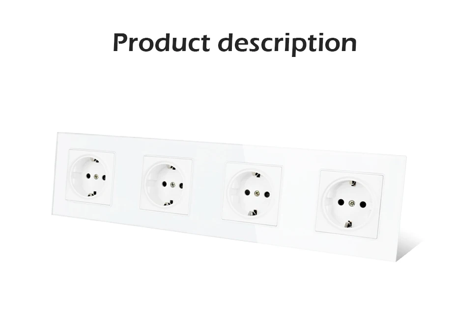 Esooli, стандарт ЕС, 4 комплекта, Хрустальное стекло, панель, розетка 258*86 мм, розетка, заземленная 16А, черная электрическая розетка