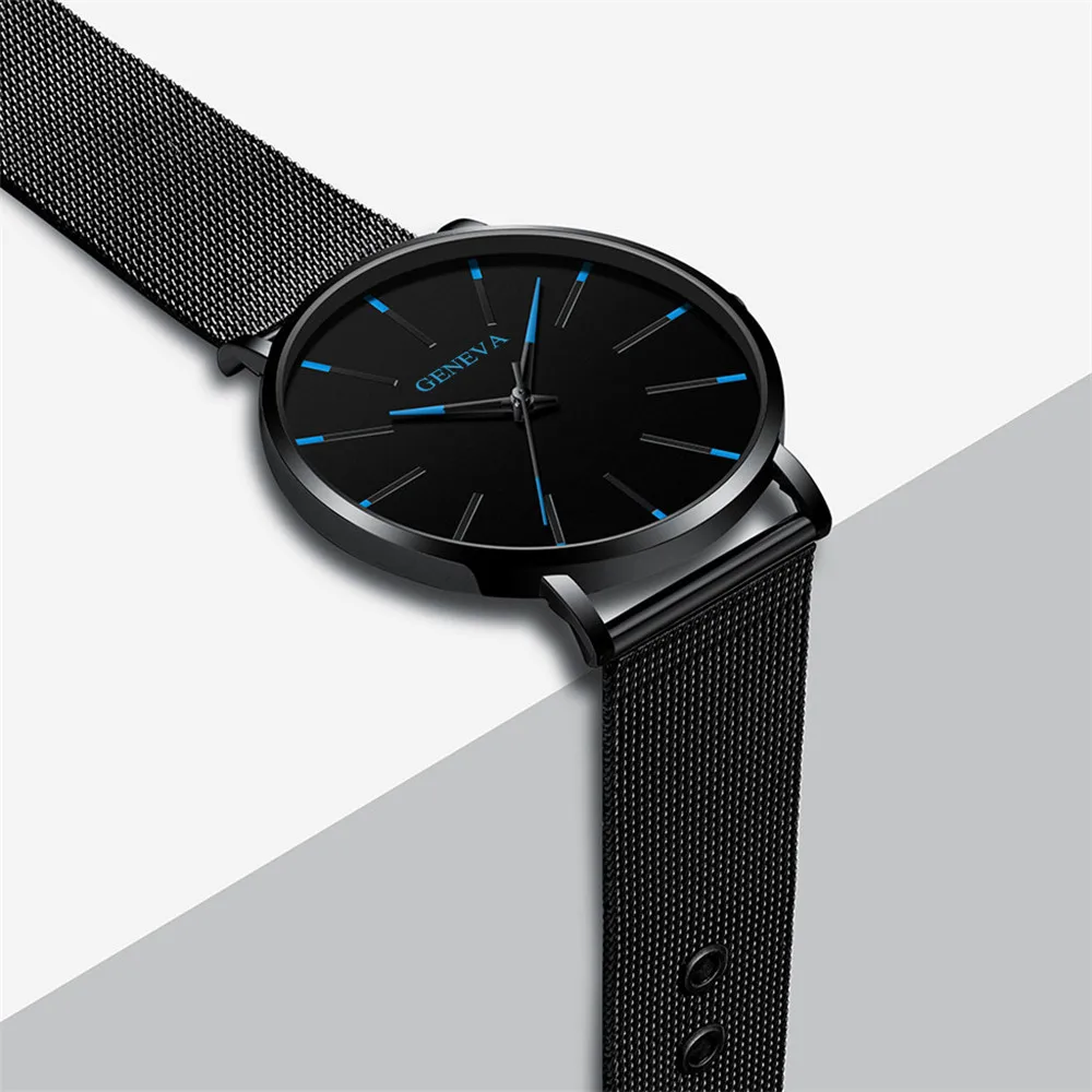 Простые современные кварцевые часы для мужчин с цветным указателем, с цветной шкалой, сетчатый Браслет из нержавеющей стали, высококачественные повседневные часы