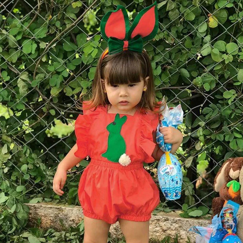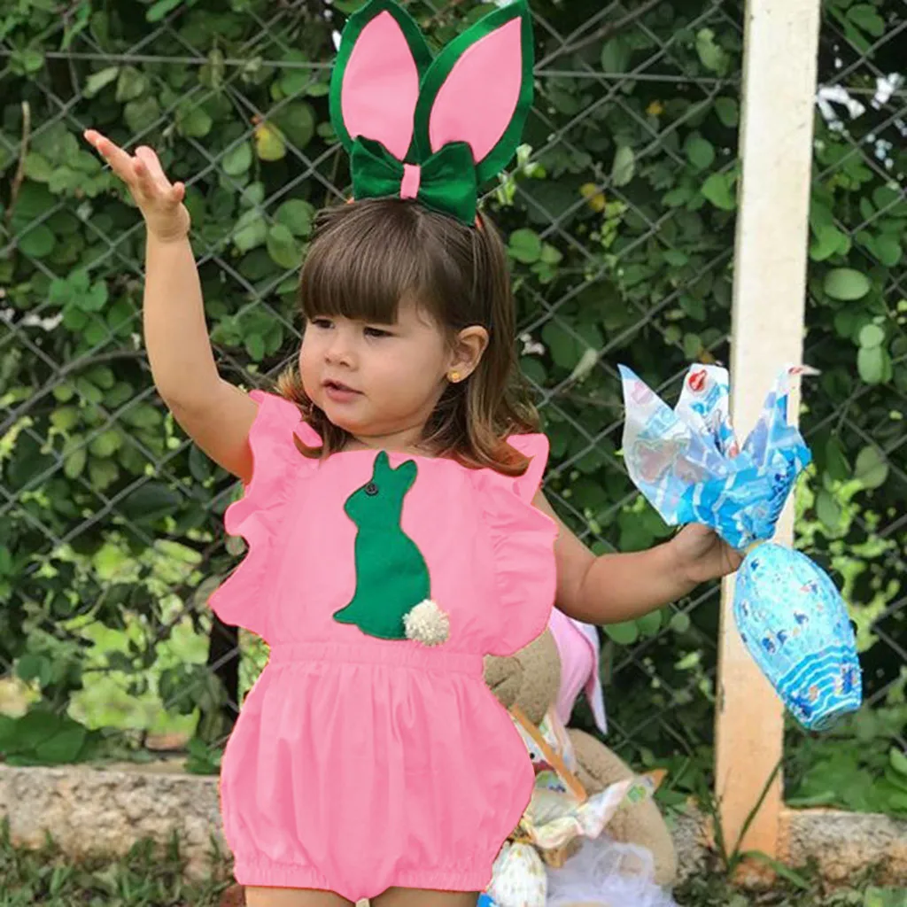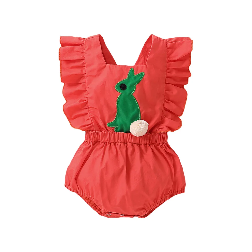 Комбинезон с оборками и открытой спиной для маленьких мальчиков и девочек на Пасху с изображением кролика