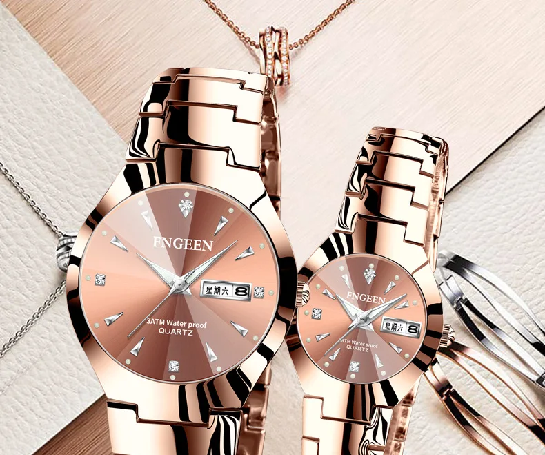 FNGEEN Топ Новинка пара из нержавеющей стали роскошные женские часы водонепроницаемые кварцевые наручные часы для влюбленных Relogio Feminino saati2020