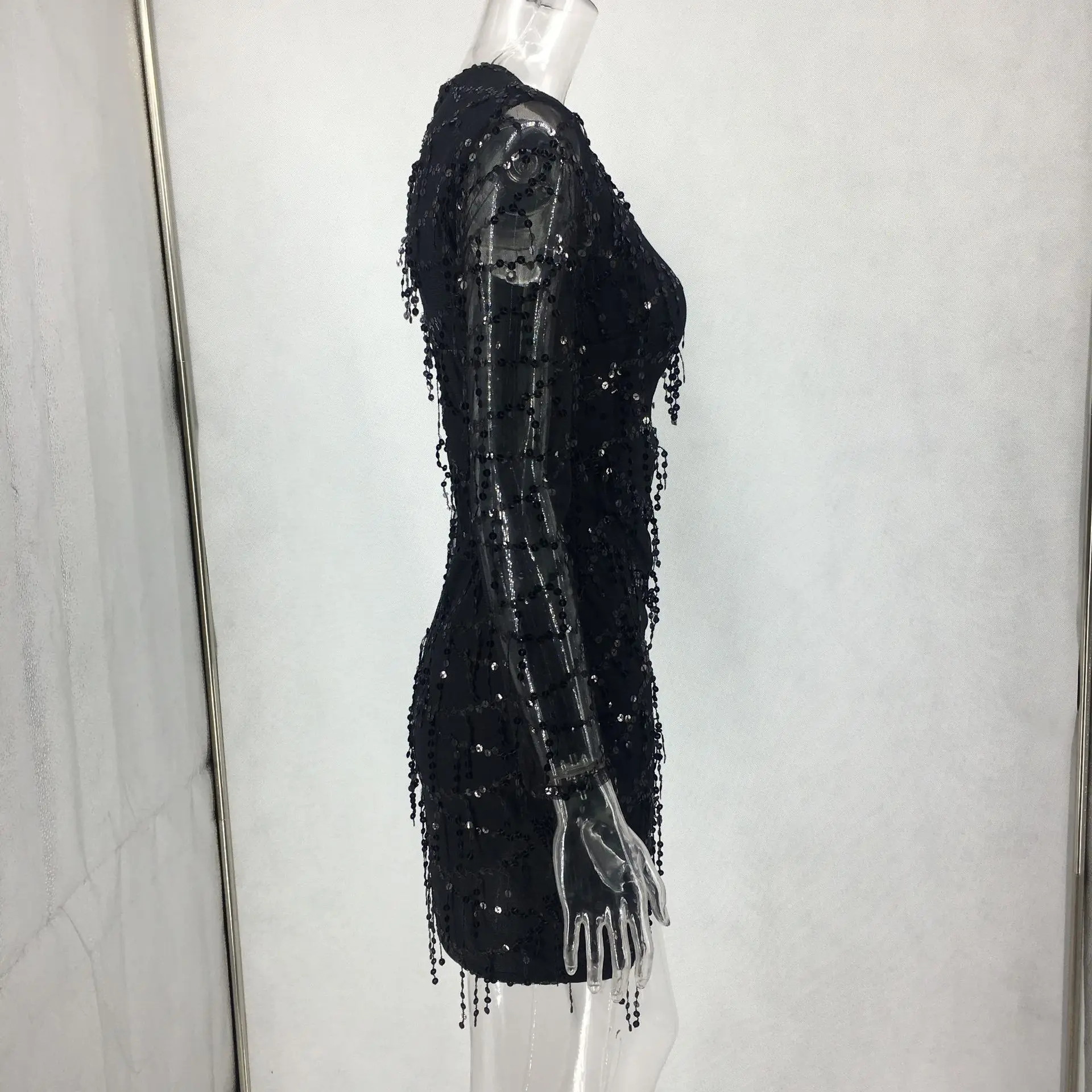 Маленькое реальное видео! Сексуальное Сетчатое платье с блестками для женщин, элегантное блестящее платье Vestidos, Клубная одежда для вечеринок, мини-платье с длинными рукавами