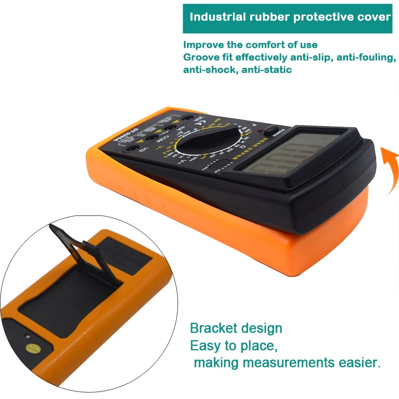 Package includes: 1*digital multimeter, 2*test leads, 1*user manual, 1*protective cover